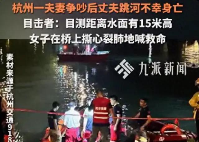 杭州,登云大桥附近,有一人落水。根据爆料人胡先生称,当时看到一对年轻夫妻在吵架,男子情绪激动就跳下河去。跳河之后女子哭喊着救命,然后救援队到了之后,将男子打捞上岸已无生命体征。 据百姓关注8月4日报道称,一对30多岁的夫妻俩,夜晚跑到河边吵架,男子气的跳河自杀。最终,酿就了一场悲剧。 8月3日这一天晚上,胡先生来到了登云大桥附近散步,正散着步,突然不远处传来一阵争吵声。 循着争吵声望去,胡先生看到了一对年轻夫妇,大概是30多岁的样子,两个人正在进行激烈的争吵。吵着吵着,男子就上头了。 只见男子情绪异常激动,眼见跟自己的妻子争吵不过,吵闹之间,自己就跨越了大桥的栏杆,直接就往大河里跳了。 看到自己的丈夫跳河,大桥上的女子明显也有点着急了,撕心裂肺的呼喊着自己的丈夫,但是丈夫已经掉落河里了,哪里还有回音呢? 于是女子又赶紧朝着周围的群众呼救,希望旁边的人可以帮忙下去救自己的丈夫。女子哭喊的撕心裂肺,但是最后只能换来自己的无限后悔。 在女子呼救之后,现场有两位热心群众听到了,都赶紧跑到了河边跳下去帮忙救人。但是两位热心群众寻找了半天,都没有找到落水的男子。 然后胡先生接着说,大概到了晚上十点多的时候,公安来到了现场,水警以及民间的救援组织都展开了现场救援行动。民警到来之后,迅速在岸边拉起了警戒线。 但是到晚上十点之后,在众人的搜救之下,也没有找到落水的男子。当时女子因为情绪过于激动,已经被120救护车先送到医院进行救治。一直到凌晨1点的时候,也没有找到其落水的丈夫。 后来又经过了几个小时的搜救,跳河的男子终于被打捞上岸,但是经过医护人员鉴定,已经没有了生命体征。送到医院的女子在初步检查之后没有大碍,在情绪平稳之后自行离开了医院。 事件爆发之后,网友称,现在情绪也算平稳了,但是回家之后,面对自己丈夫的遗体,情绪又该如何呢? 自此之后,失去了自己的丈夫,在未来漫漫人生之路,是否会因为自己失控的情绪自责呢?其中之苦,大概只有她自己可以了解吧。 1.夫妻之间吵架,如果因为一方原因导致另一方跳河自杀身亡,是否需要承担法律责任呢? 并且,另一方已经及时呼救、报警或者尝试施救,虽然没有成功,但是已经履行救助义务,另一方则无需担责。 根据现场的目击者称,当时夫妻俩正在进行激烈的争吵,但是吵闹中是否带有威逼、让对方去自杀等这类言辞,暂时还没有目击者可以提供证明。 如果只是单纯吵架,一方情绪激动自杀了,这位妻子则不需要承担法律责任。 夫妻之间在当众吵架的时候,旁边的群众,也是有权介入协调的。 面对夫妻吵架,如果升级为斗殴,并且存在扰乱公共场所秩序的情况,群众优先报警处理,并且也有制止的权力。 只是普通争吵并无肢体冲突,可以善意劝解,但是无强制介入权;如果危及人身安全如跳楼、跳河,应当立即报警并且协助救援。 根据法律规定可以知道,在这两个年轻人发生争吵的时候,如果就是普通的吵架,群众也是可以上前进行善意的劝解的,群众是有协调的权力的。 如果发生了斗殴,或者一方被打的情况,群众则有权力制止,并且可以报警,因为危及到人身损害。 这个悲剧的发生,也让很多人产生了反思,很多网友说,以后再也没法吵架了,更多的时候,互相礼让,或许生活更加美好。对于此,您认为呢?