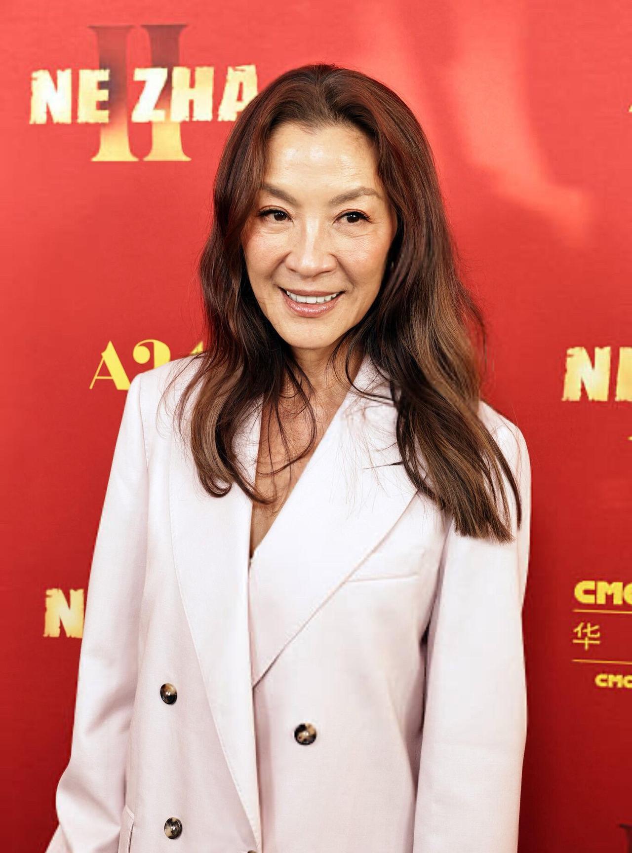 63岁杨紫琼穿2800块的镶钻洞洞鞋与郭帆导演合影~~真是红气养人啊,杨紫琼这精