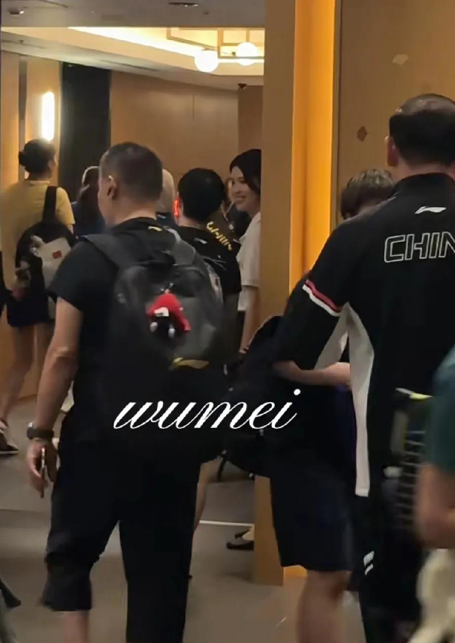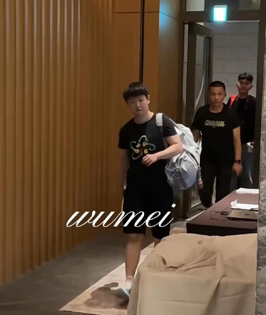 日本横滨冠军赛,孙颖莎结束第一天适应性训练后,与队医袁朝明一同返回酒店。 看出来