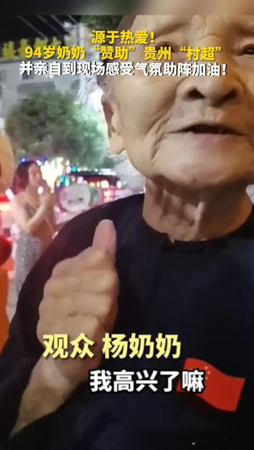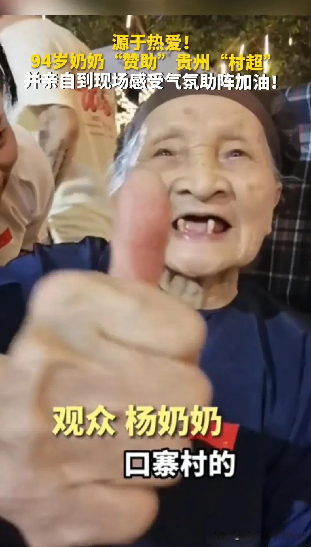 94岁老奶奶赞助贵州村超,并亲自到现场感受气氛加油,这不就是足球的意义吗?千万不