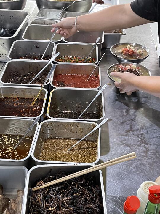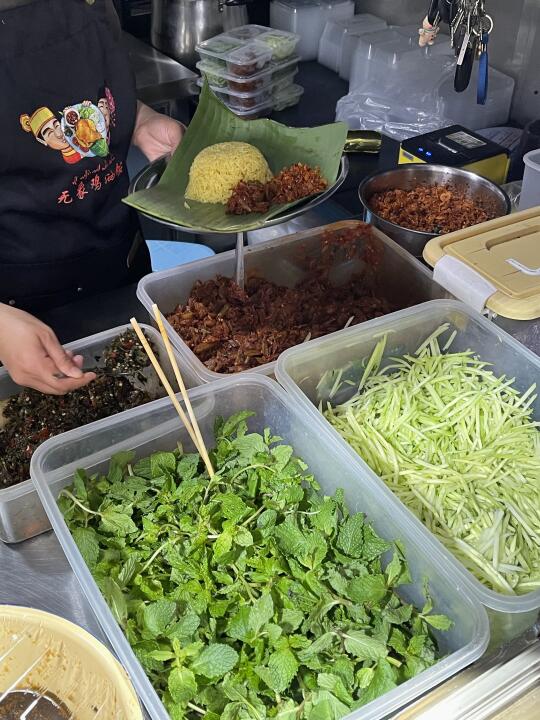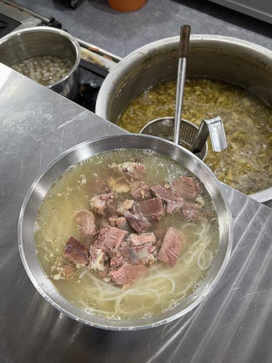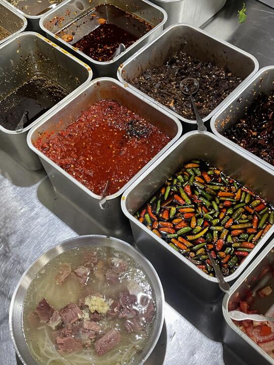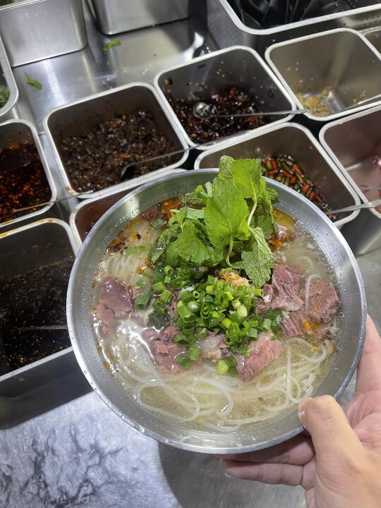 芒市当地人都会来吃的一家早点了,也是我到芒市的第一餐,点了清汤牛肉饵丝,牛肉品质超好,带奶香味的,而且量特别多!调料都可以自己配,必须加辣子和薄荷叶,突出一个地道!
