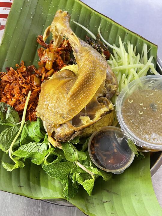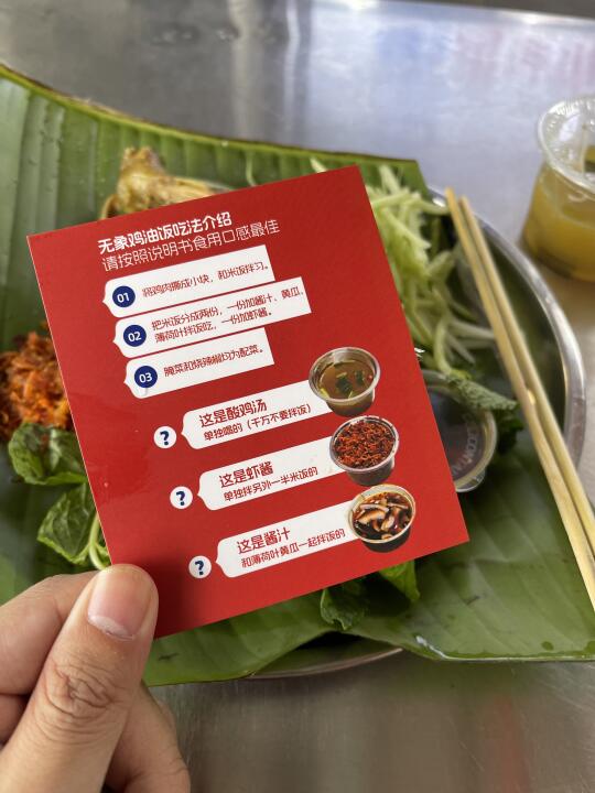 很独特的味道和吃法,可以鸡肉+鸡油饭+黄瓜,也可以是鸡肉+鸡油饭+虾酱,虽然感觉鸡肉有点点柴,但是还是味道层次还是很丰富的,没吃过的一定要试试,最后喝一口酸酸的汤,解腻!