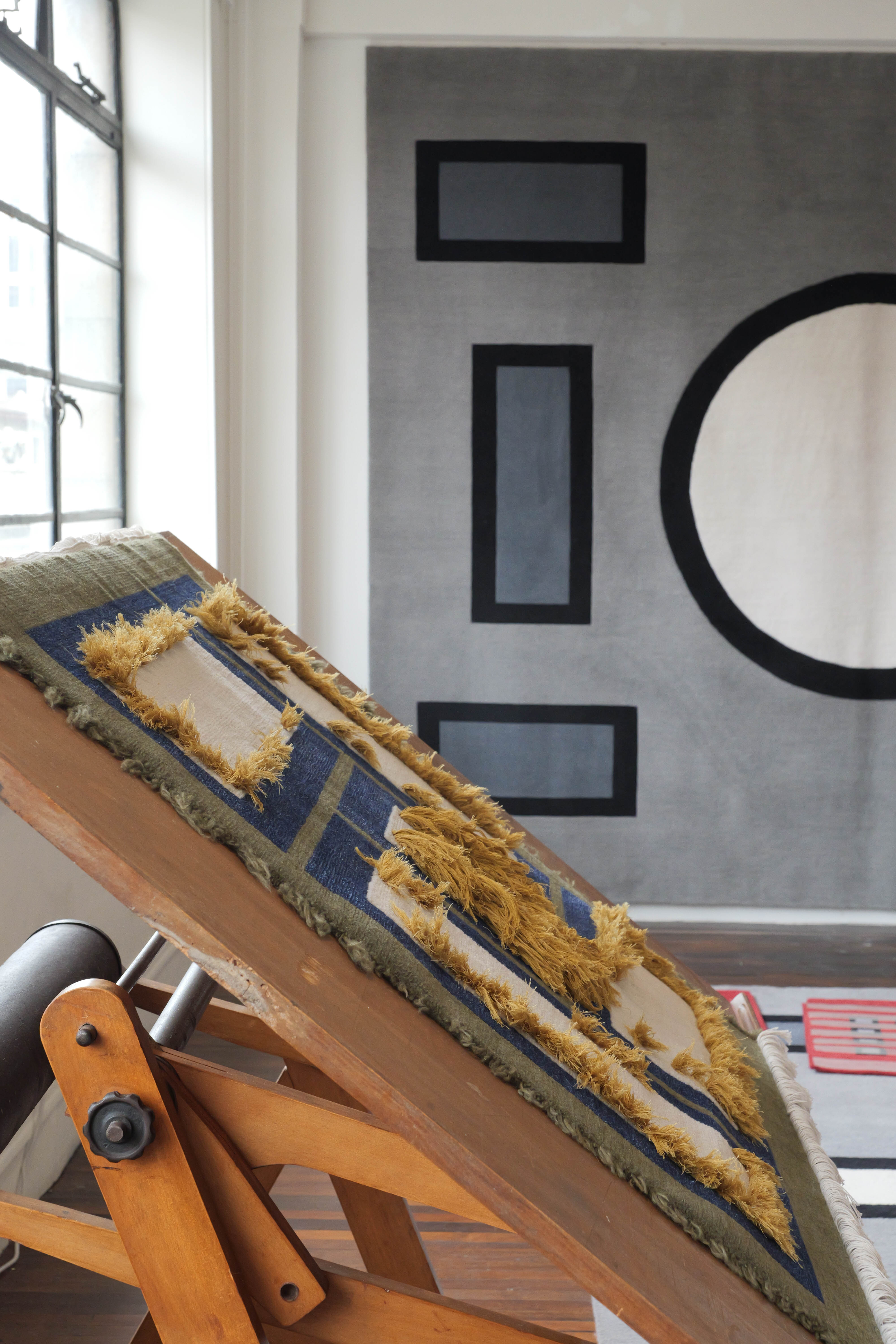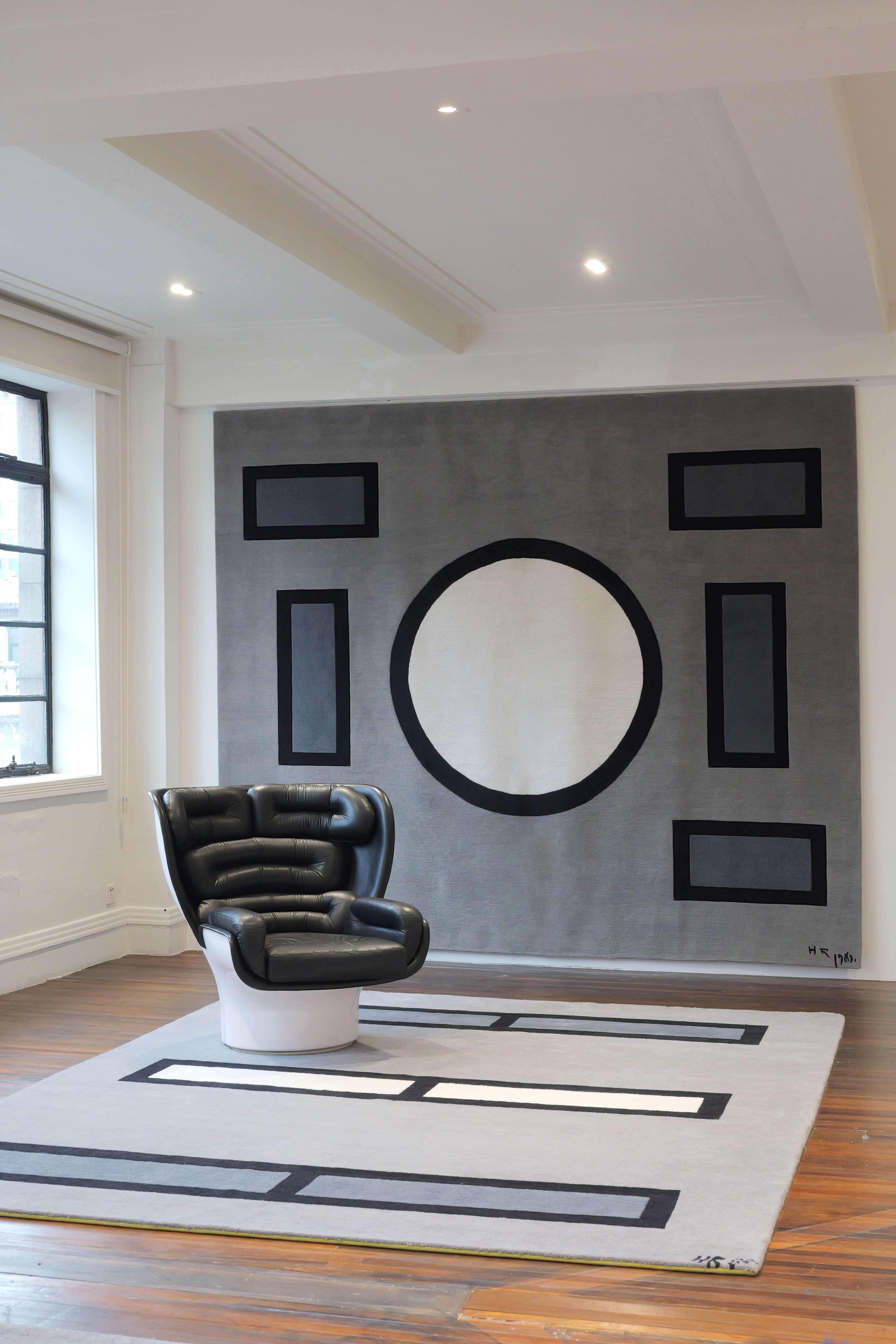 织踩在脚下的“八卦”,用几何解构《易经》的秘密。本期东方100新浪潮,DECO带来艺术家黄锐的先锋创意。东方哲学是黄锐的创作起点,他将《易经》《道德经》中蕴含的空间与大道,转述为极具现代性的视觉语言。方块几何与色彩结合,逻辑准则是他自己的,无形之“道”由此化为有形之作,“道”中有无穷变化,其作品同样有着万千气韵。不久前,黄锐又有了新尝试,他与织毯品牌“毯言织造”合作,将其代表性的“空间结构”系列作品转述为艺术织毯。从“架上”到“生活空间”的转换,实现了艺术从平面到生活场域的维度跨越。