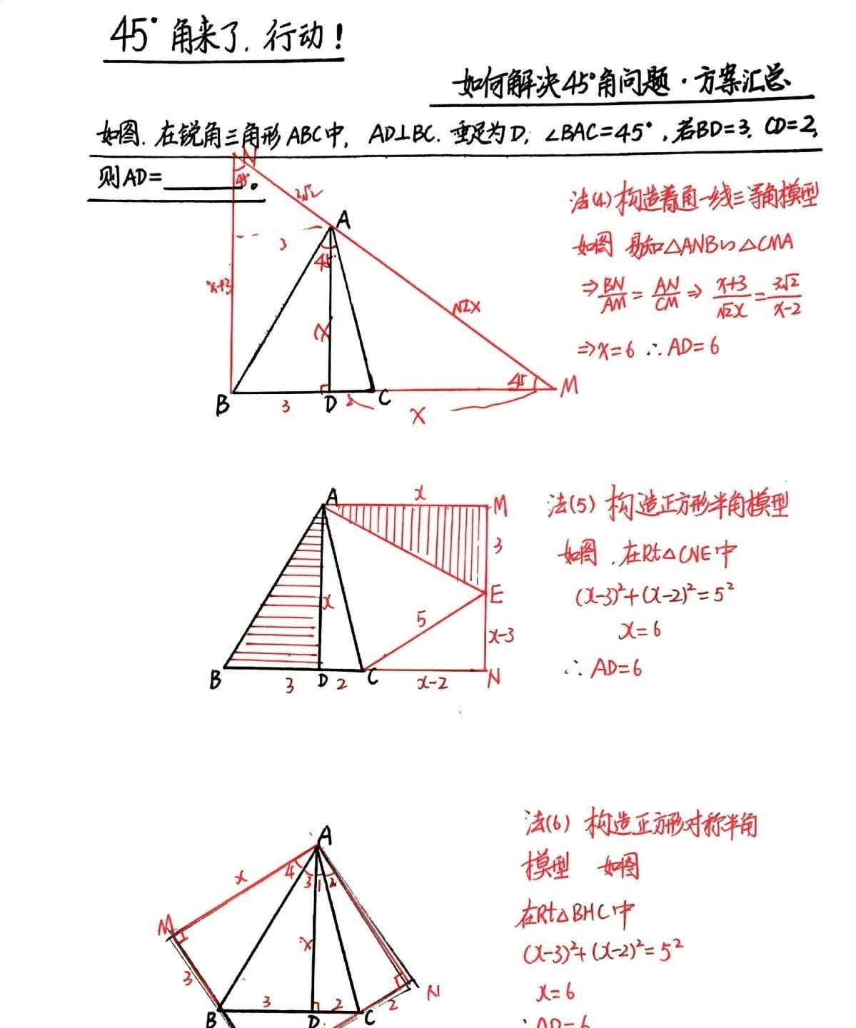 初三数学中考高频考题,45度角的解决方案,分享了多种方法,选择最适合你的方法。#
