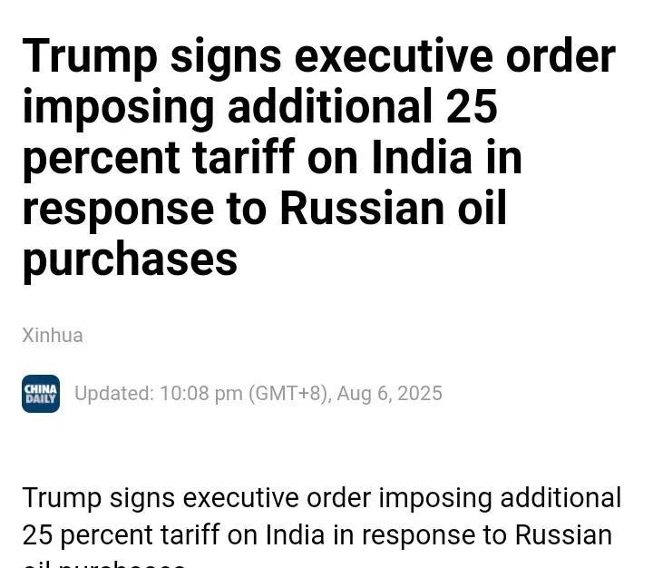 嘚瑟到家,印度阿三要哭了!美国总统特朗普刚刚正式签署行政令,对印度购买俄罗斯石油