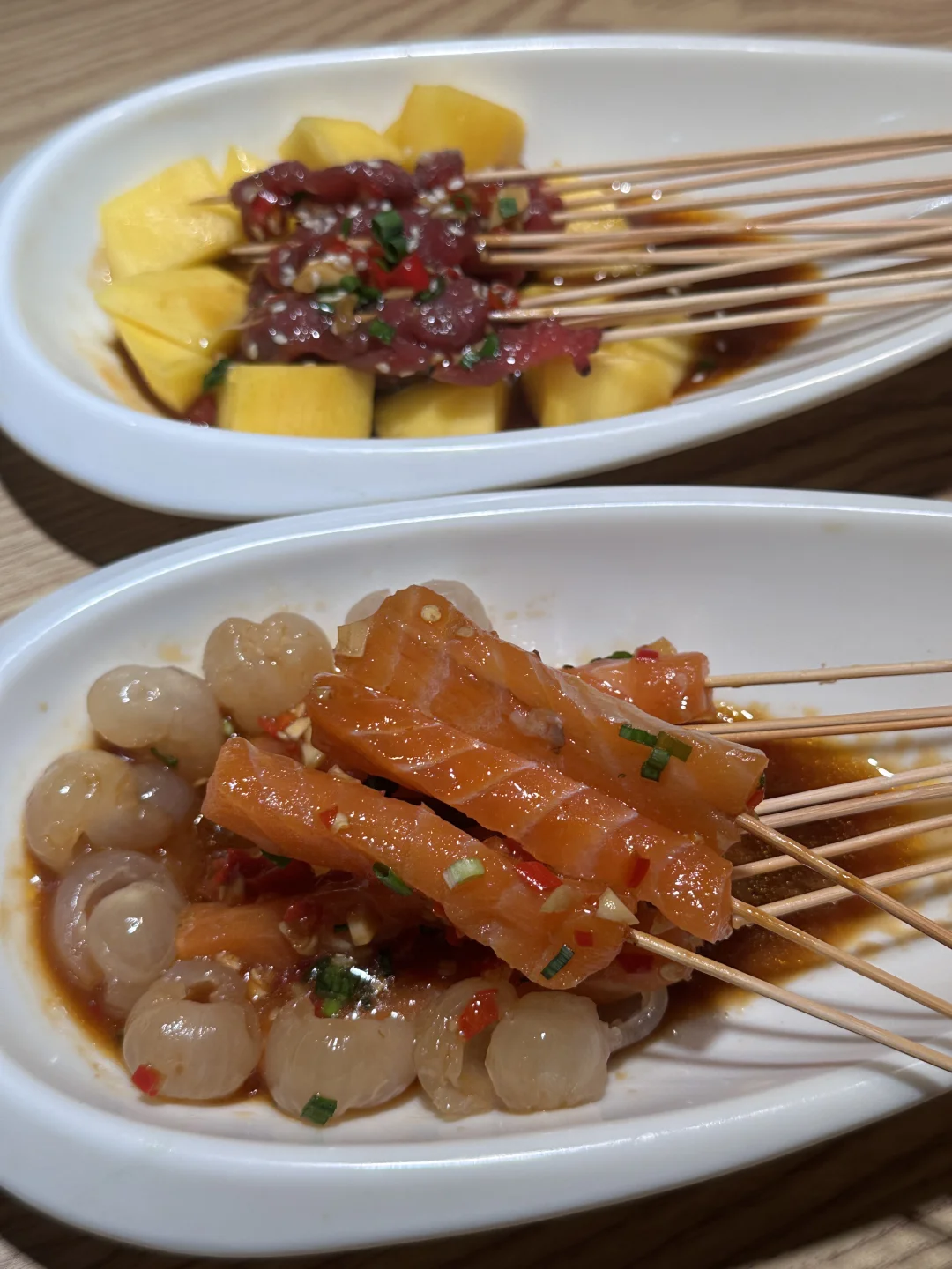 (新开的)是和朋友都爱去的小店。 这家烧烤好好吃, 5天没去了。此时疯狂想念!!! 他家的肉和食材都超级新鲜,吃得出来! 而且老板说食材12小时以内处理的, 每天到22:00差不多就卖完了,柜子卖空的程度。