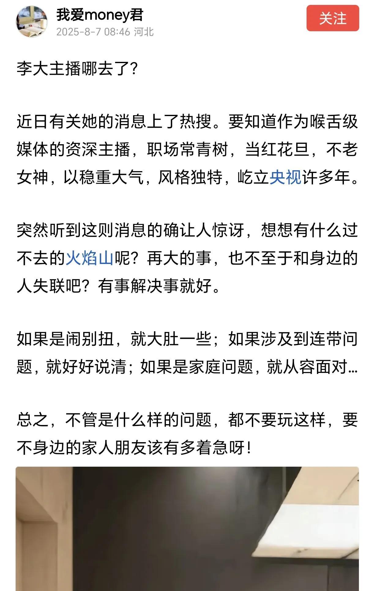 有些人造谣李红失联,究竟是什么心思? 央视每个年都有一周至两周的主持人休假,李红