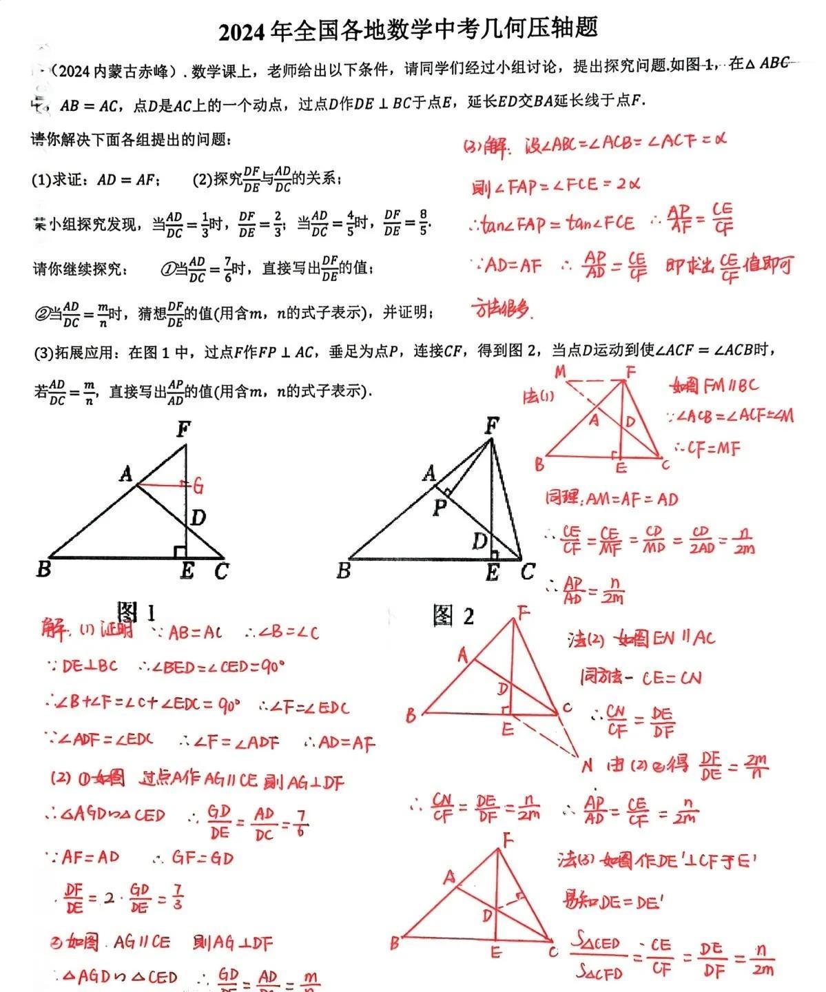 初三数学中考精品压轴题推荐,四边形综合压轴题,手写答案供大家参考。#教育# #中考数学题# #数学# #几何压轴题# 25版初中数学中考专项(圆+几何辅助线+二次函数等压轴题专项练习