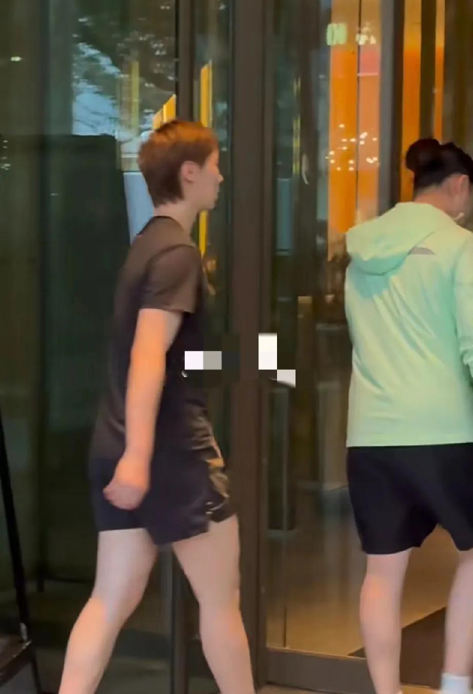 今日日本横滨,吃完饭后和徐奕妹妹一起返回酒店的王曼昱。 看得出来吃的挺好,小肚子