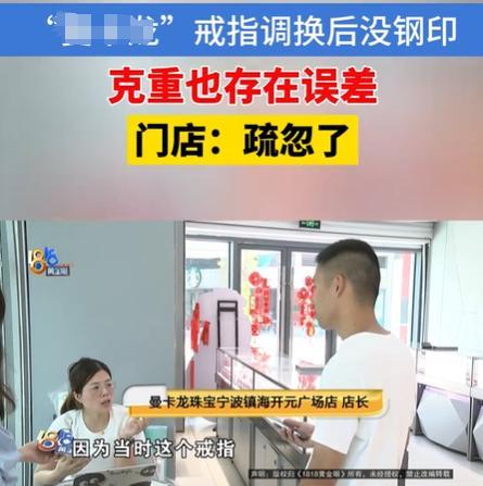 大牌黄金不打钢印,连克重也是错的? 浙江宁波,项先生在6月24日在宁波某商场购买
