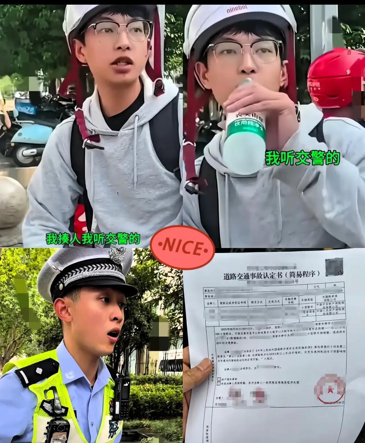 “淡定哥”,可处! 广东小伙骑车在马路上正常行驶,当他在等信号灯,绿灯刚要起步时与对面同样骑车的女生发生了剐擦。 女生二话不说,拿起手机开始对着小伙一顿拍,还嚷嚷道:“你撞到我了,给我道歉!”小伙漫不经心的喝着饮料,没接女生的话,而是不紧不慢的说了句:“我等交警来,我听交警的!” 这一句话把女生惹急眼了,开始对小伙一顿疯狂输出;“你是不是撞到我了,撞人还想揍人是吧?”小伙眼睛都不看女生一眼,只是淡定的回复了一句;“我听交警的,交警怎么处理我就怎么接受!” 视频中,女生明显已被小伙淡定的语整崩溃了,他开始言语攻击男生:“我都不知道你是怎么活到现在的?你撞了人,还理直气壮了是吧!”小伙依然是那一句,:“我活到现在跟你没关系,我听交警的! 无论你说啥,我就不接茬,主打一个等警察,直接把女生干破防。交警赶到后,判女生逆行全责,让那个她去交警队处理,可没想到,女生竟然半路偷偷溜走,真是搬起砖头砸自己脚。 不得不说,这个小伙的情绪够稳定,换做任何一个男性,都能被气炸,更不敢想象会发生什么,这个女生明显是套路小伙,可是小伙就是不入套,对付这种小仙女, 小伙的做法可以纳入教科书了!
