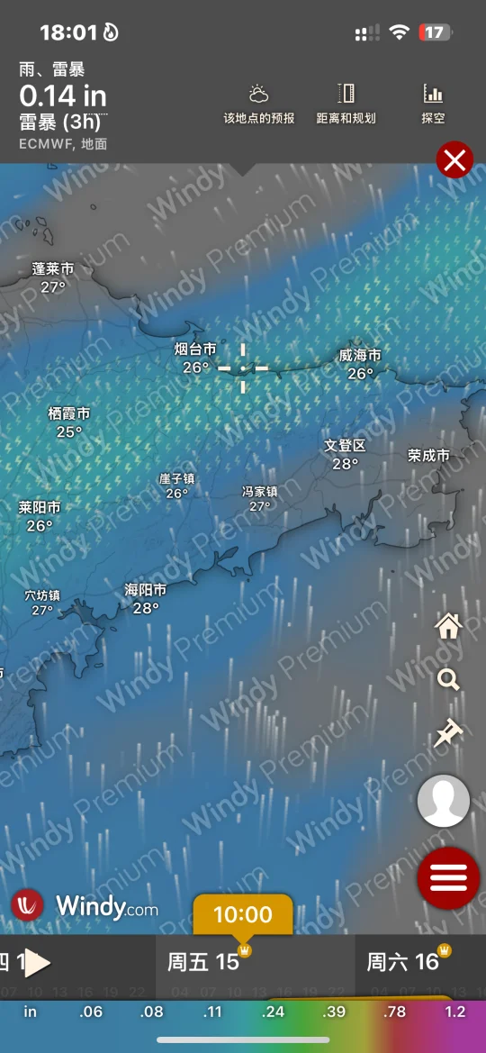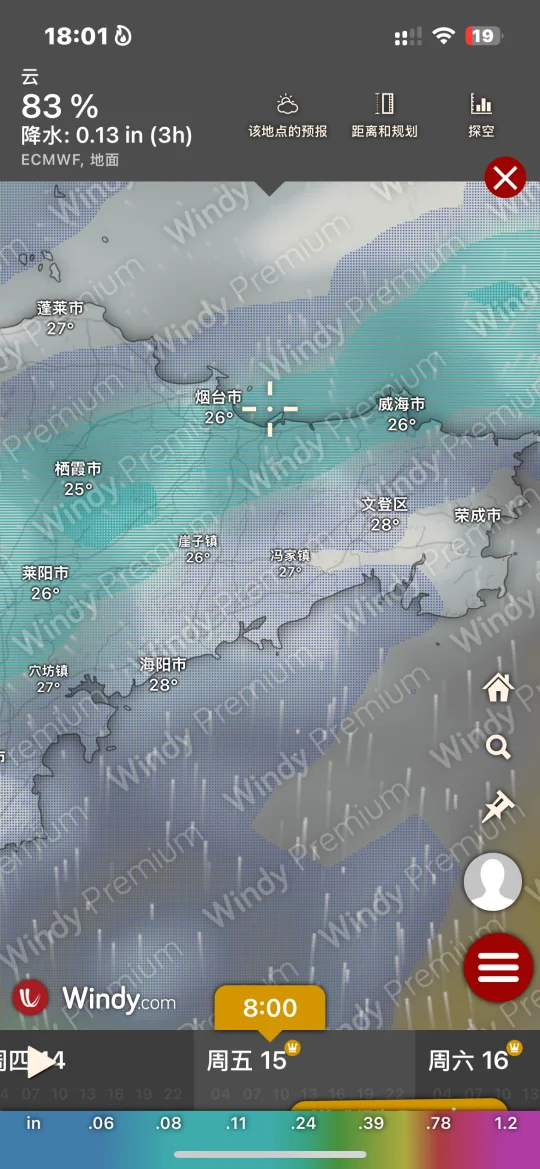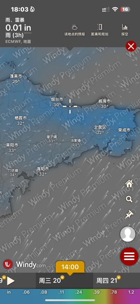 Hi.宝子们好,欢迎来烟台旅游观光!天气基本三天内准确度高!