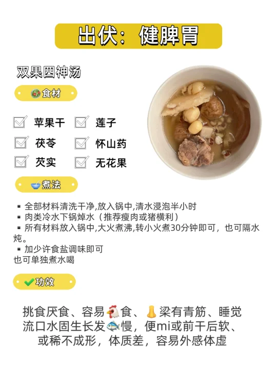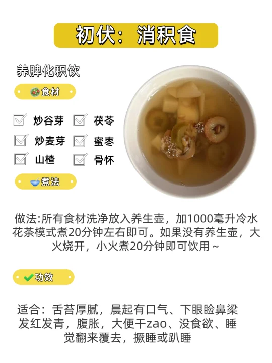 🥣食材:炒谷芽+炒麦芽+骨怀+山楂+茯苓+蜜枣