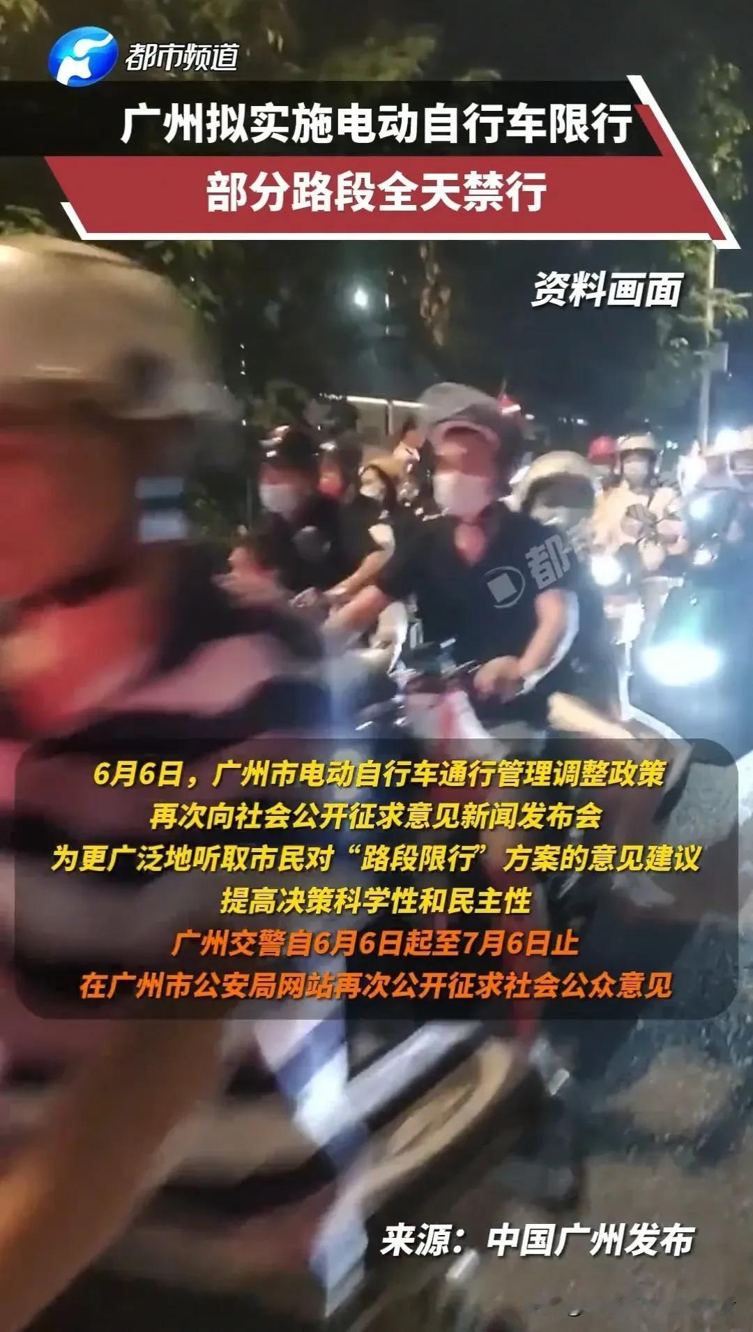 广州实施电动自行车限行,部分路段全天禁行,说是要广泛听取市民对路段限行方案的意见