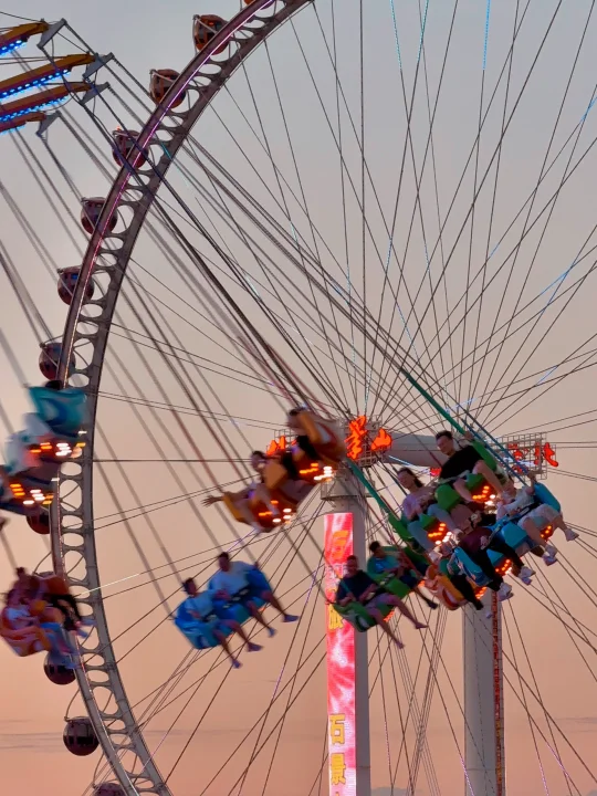 摩天轮上能俯瞰整个京西夜景!畅玩票除包含过山车、大摆锤、海盗船等大多数的游艺项目,还包含摩天轮且不限次畅玩,相当划算;摩天轮平常单次就50元/次