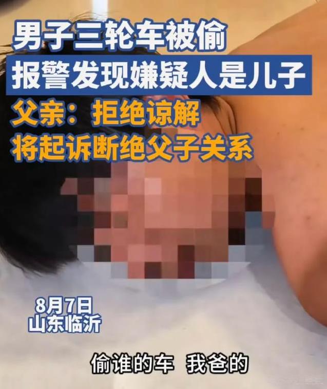 “坑爹坑出新境界了!”山东临沂,大爷发现自家三轮车被偷,报警后才发现是儿子监守自盗,三轮车也被儿子卖掉换钱了。儿子以孙子要出生为由,想要大爷签谅解书,被伤透心大爷果断拒绝,甚至还表示要断绝关系。 中原网8月7号报道了这则亲生儿子偷卖父亲三轮车的新闻,事情的经过是这样的。 事发当天王大爷(化名)睡醒后,出门时发现停在小区楼下的三轮车竟不翼而飞,急得他马上报警,同时大爷心里也在纳闷:小区里的豪车也有几台,怎么还有人盯上自己这不值钱的破车了。 接到报案后,民警很快赶到现场,根据物业提供的监控,很快锁定了嫌疑人小王(化名)。 还不等民警做出反应,在一旁看着视频的王大爷瞬间急火攻心,原来他发现偷车的竟是自己的亲儿子。 见到是家人所为,民警表示只要儿子愿意把车还回来,这事就可以当成普通的民事纠纷处理。 一旁王老汉的反应却让所有人意外:坚持报案,让民警按偷窃罪处理。 见大爷坚持,民警正式立案并开始追查小王的下落。 事情接下来的发展变得魔幻起来:通过技术手段,民警发现小王此时正在县城的宾馆开房,顺便通知了大爷前来指认。 最后在房间里成功“抓获”了小王,令人意外的是房间里竟还有另外一个女儿,看到这一幕的大爷脸都绿了。 原来大爷儿子已经成家,孙子也快出生了,可在这节骨眼上,自己的亲儿子竟背着儿媳来到宾馆鬼混,怎能不让大爷心寒。 民警追问三轮车的下落,小王支支吾吾表示三轮车已经转手卖了,这开房的钱就是卖车来的。 在场的人无不面面相觑,饶是民警办过这么多案件,但小王这样的奇葩也属罕见。 审讯过程中,民警发现小王竟然还是个惯犯,算上这次已经是第五次进来了。 最最离谱的来了,事后民警安排了父子两见面,一见面小王就跪着,一把鼻涕一把泪的想让父亲签个谅解书,就算是为了那尚未出生的孙子考虑,总不能孩子出生时,爸爸在里面关着。 王大爷识破了儿子的“诡计”,要求民警从严处理。 原来这些年儿子的所作所为早已伤透了老父亲的心:几年前留给老伴的8000元生活费,被儿子发现后偷偷拿去花了;亲姐的两块智能手表被偷拿去换钱了;之前更是偷过两辆电动车和两部手机,当事人报警后都是家里赔的钱等等。 说到最后王大爷不禁老泪纵横,甚至表示要去起诉和儿子断绝父子关系,免得以后被他拖累。 那么,从法律角度,该如何认定这件事呢? 1、如何评价王大爷的行为? 根据《民法典》第二十六条规定:父母对未成年子女负有抚养、教育和保护的义务。成年子女对父母负有赡养、扶助和保护的义务。 该条明确了父母子女之间的法律义务,强调了家庭关系中双方应承担的责任,对于维护家庭和谐稳定具有重要意义。 王大爷因为儿子的所作所为,想要断绝父子关系,但根据现有的法律,亲生父子关系基于天然的血缘关系,是无法断绝的,只有对于养父子关系和继父子关系,在符合一定条件时才能申请解除。 这意味着王大爷想要彻底断绝和亲生儿子的关系,是不可能的也是不现实的。 2、如何评价儿子的行为?他将受到怎样的处罚? 《刑法》第 264 条规定:盗窃公私财物,数额较大的,或者多次盗窃、入户盗窃、携带凶器盗窃、扒窃的,处三年以下有期徒刑、拘役或者管制,并处或者单处罚金;数额巨大或者有其他严重情节的,处三年以上十年以下有期徒刑,并处罚金;数额特别巨大或者有其他特别严重情节的,处十年以上有期徒刑或者无期徒刑,并处罚金或者没收财产。 此外,根据《最高院、最高检关于办理盗窃刑事案件适用法律若干问题的解释》,盗窃公私财物价值一千元至三千元以上、三万元至十万元以上、三十万元至五十万元以上的,应当分别认定为 “数额较大”“数额巨大”“数额特别巨大”。 本案中如果最后核定被盗的三轮车价值超过了1000元,这就达到了盗窃罪的立案标准,就算是亲儿子,在没有得到父亲的允许下偷车卖钱,也要承担相应的法律责任。 3、如果最后王大爷签了谅解书,会对儿子的判决产生怎样的影响呢? 根据《最高院、最高检关于办理盗窃刑事案件适用法律若干问题的解释》第 8 条规定:偷拿家庭成员或者近亲属的财物,获得谅解的,一般可以不认为是犯罪;追究刑事责任的,应当酌情从宽。 如果王大爷愿意签订谅解书,最终判决将会根据三轮车的价值,最终从轻处理,甚至是免除儿子的刑事责任。 那么,对于这个儿子的离谱行为,你是怎么看的呢?欢迎评论区聊聊!