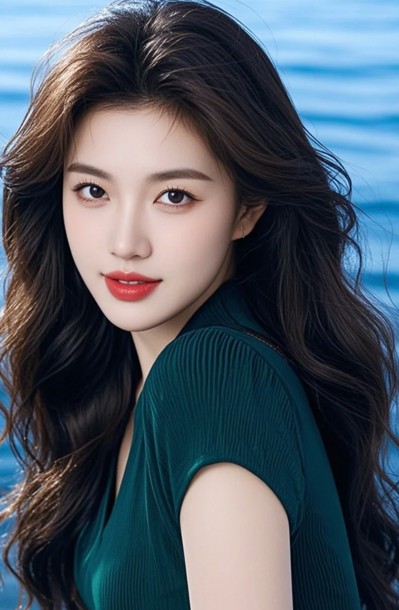 她穿深绿V领,不张扬,却美得让人一眼万年