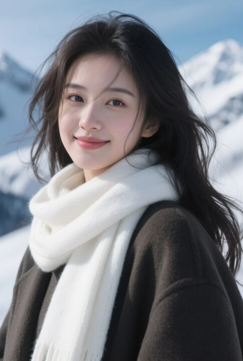 她的笑和飘动的发丝,唤醒了整片雪山