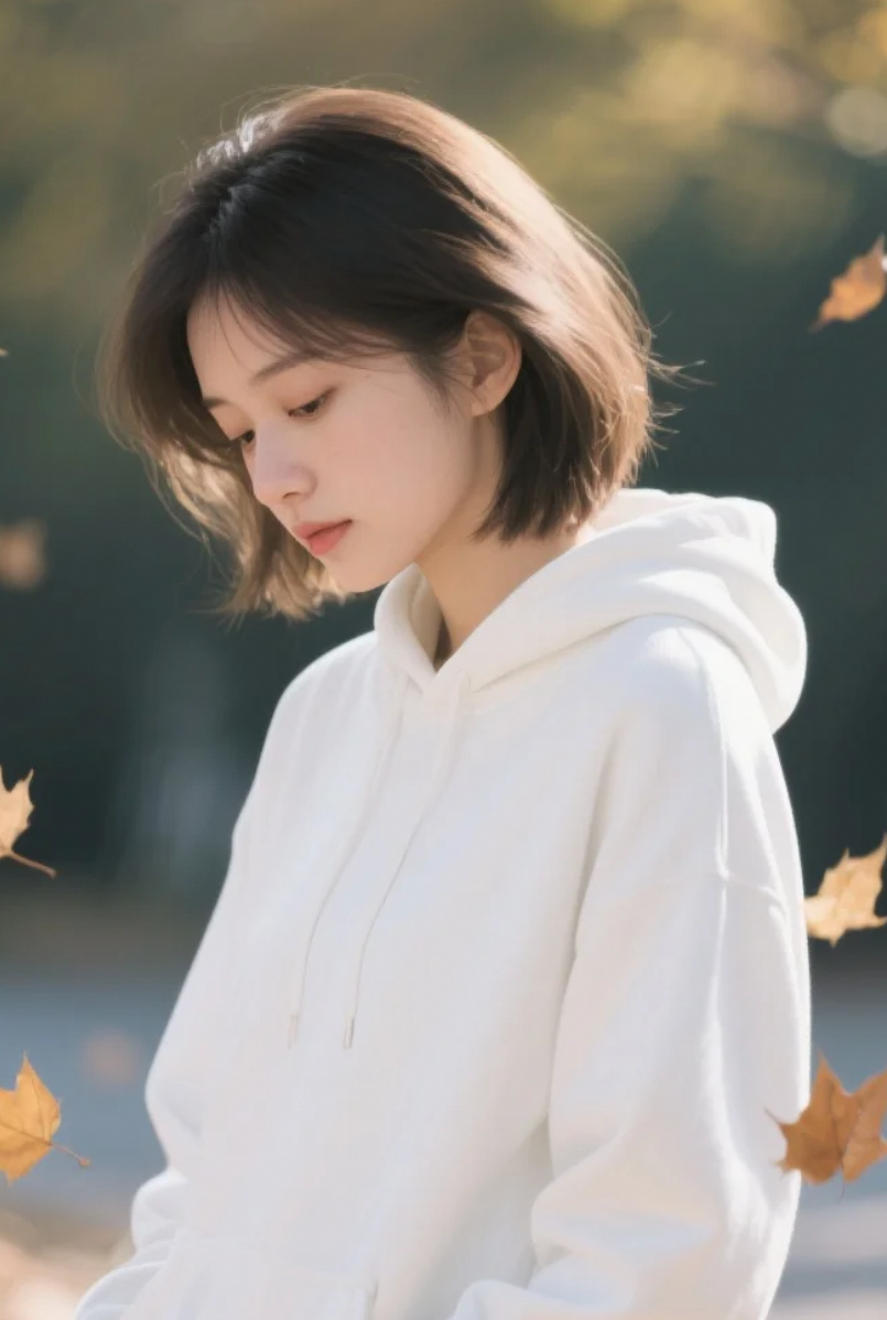 她在寒风中微笑,毛呢大衣裹着温柔