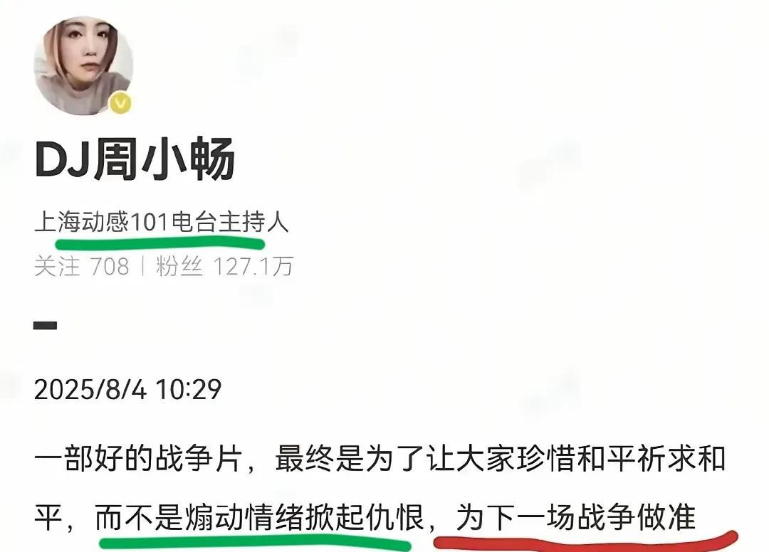 上海电台主持人周小畅,作为一个中国人,你知道你在说什么吗?中国哪部电影煽动情绪、