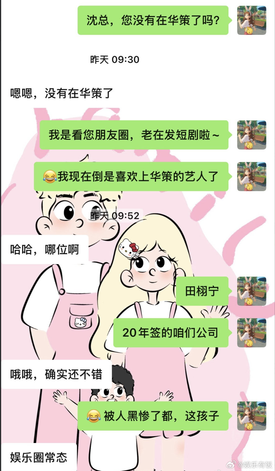 前华策员工谈田栩宁被黑 前华策员工分享对田栩宁被黑的看法,表示这是“娱乐圈常态”。