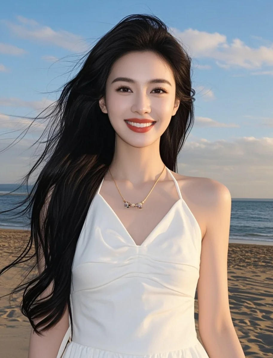 让海风带走烦恼,只留下长发与白裙的轻盈