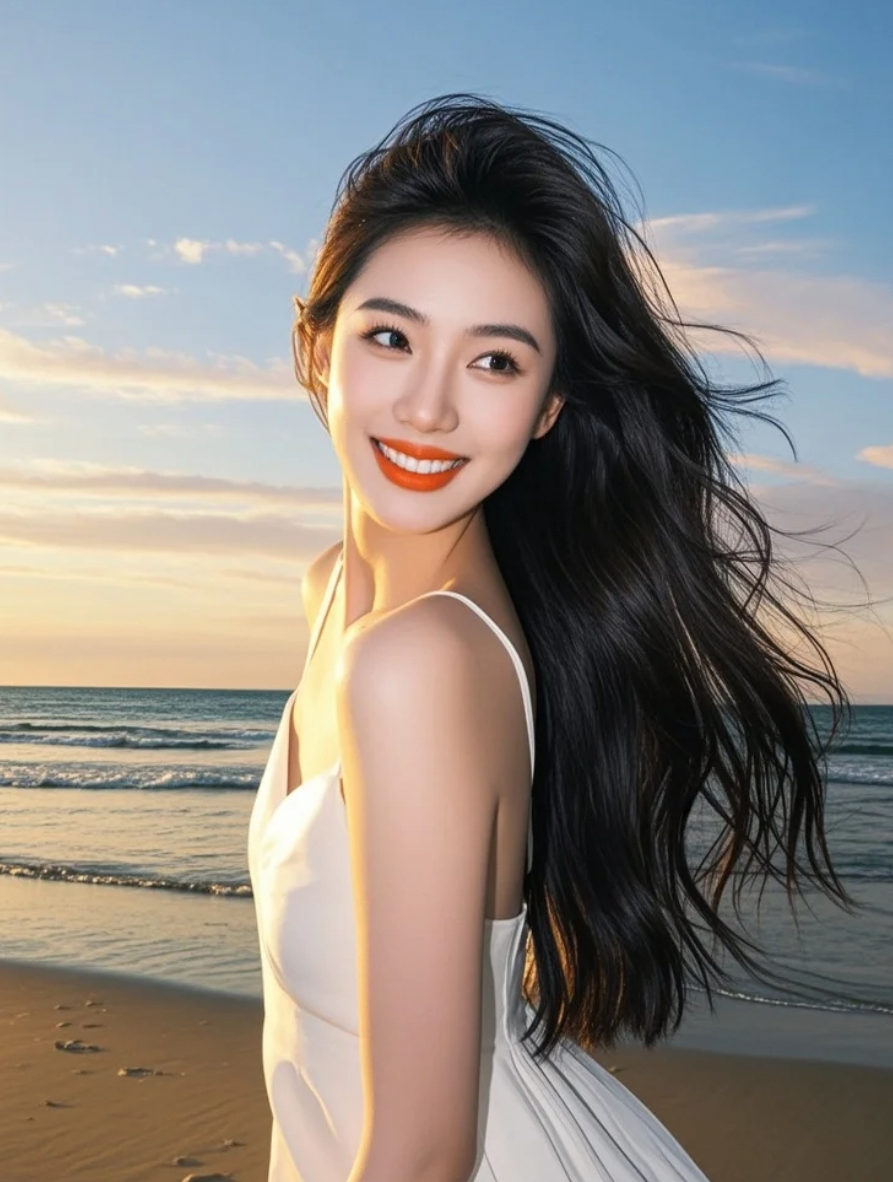 白裙长发,是黄昏海岸线上最动人的风景
