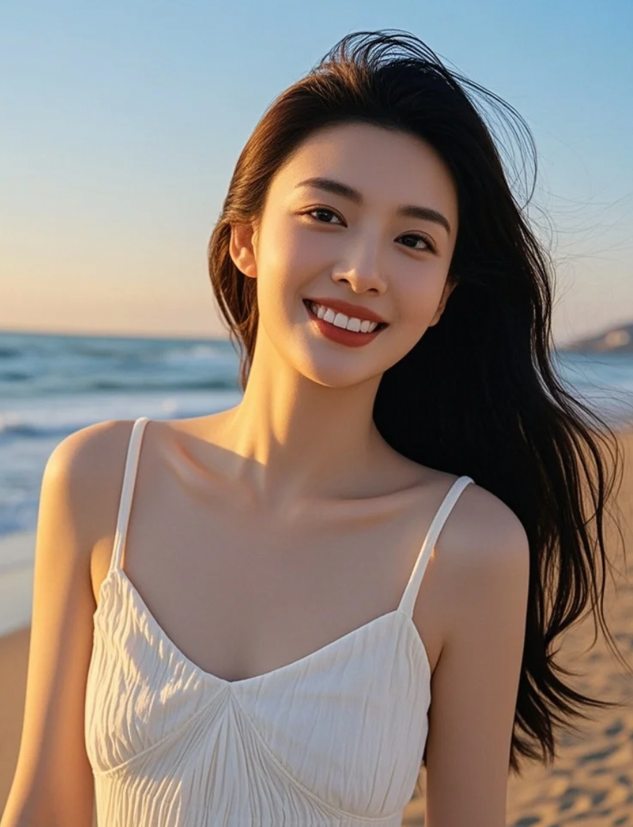 白裙长发,是黄昏海岸线上最动人的风景