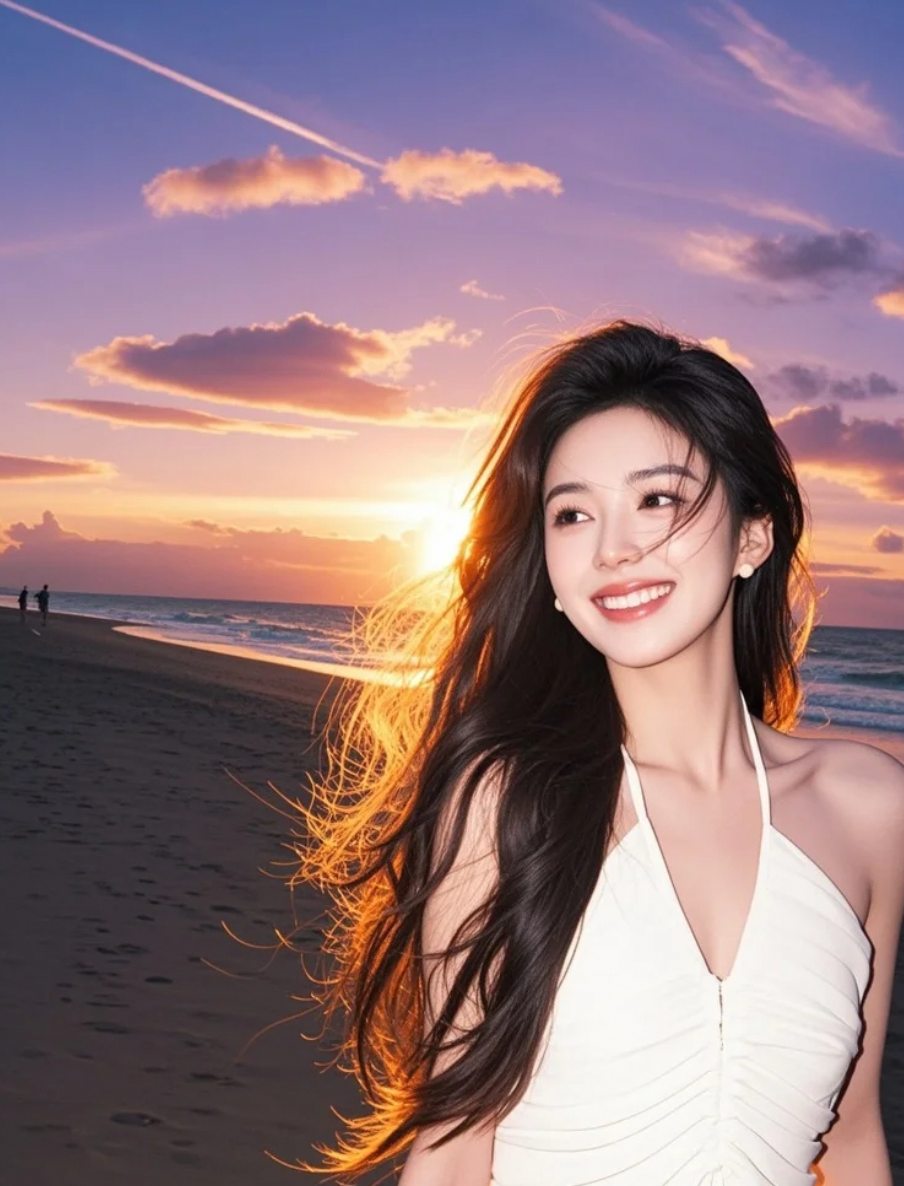 白裙长发,是黄昏海岸线上最动人的风景