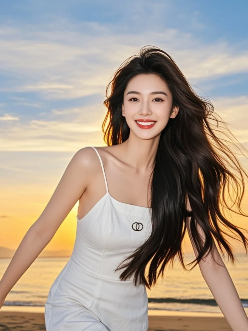 白裙长发,是黄昏海岸线上最动人的风景
