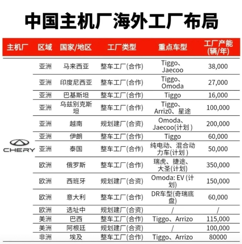 比亚迪和奇瑞海外基地、市场盘点对比。