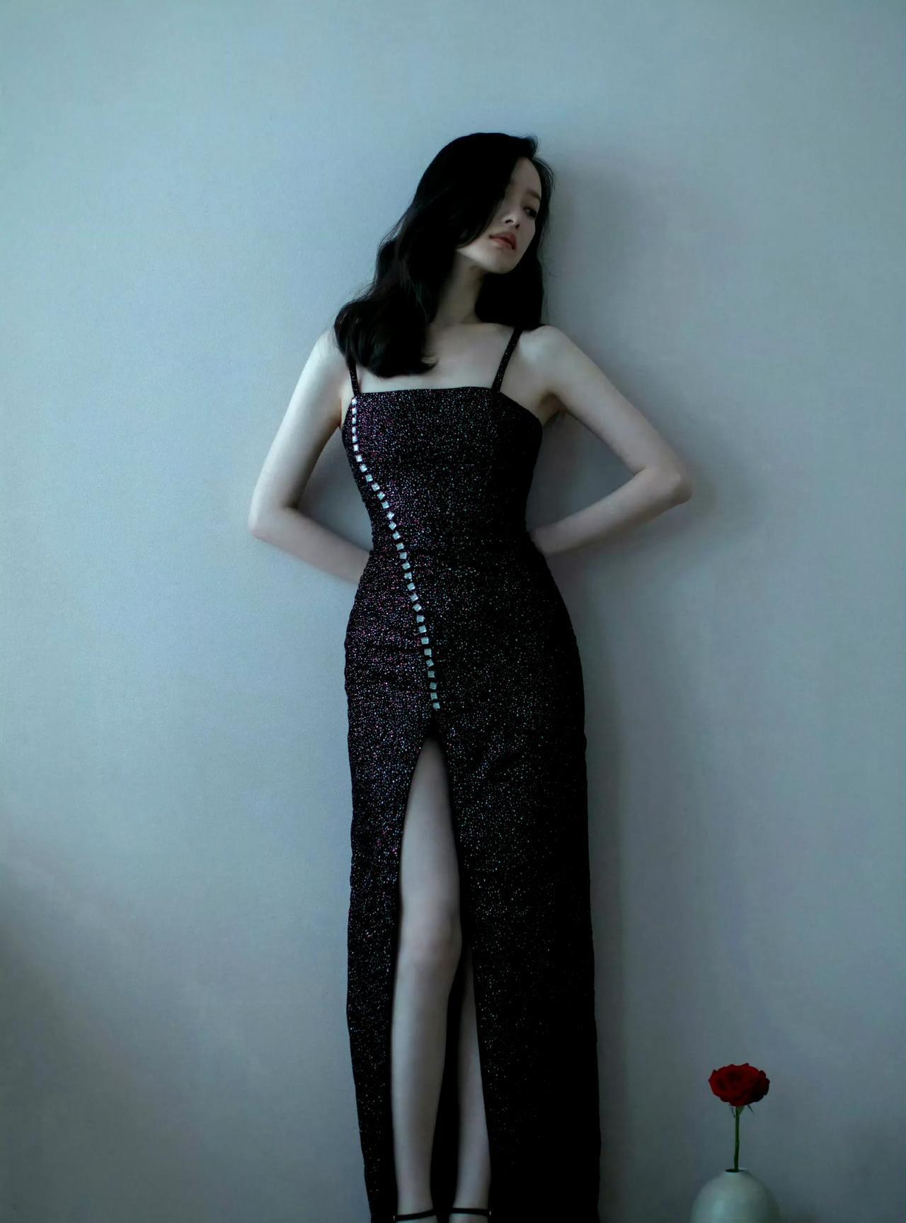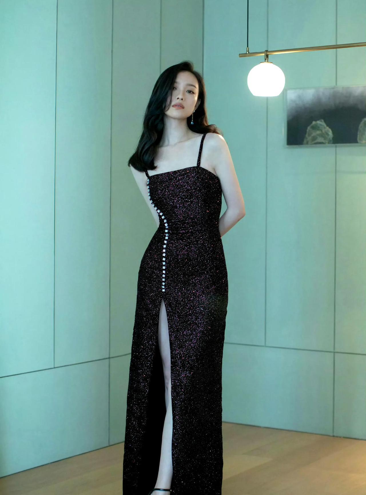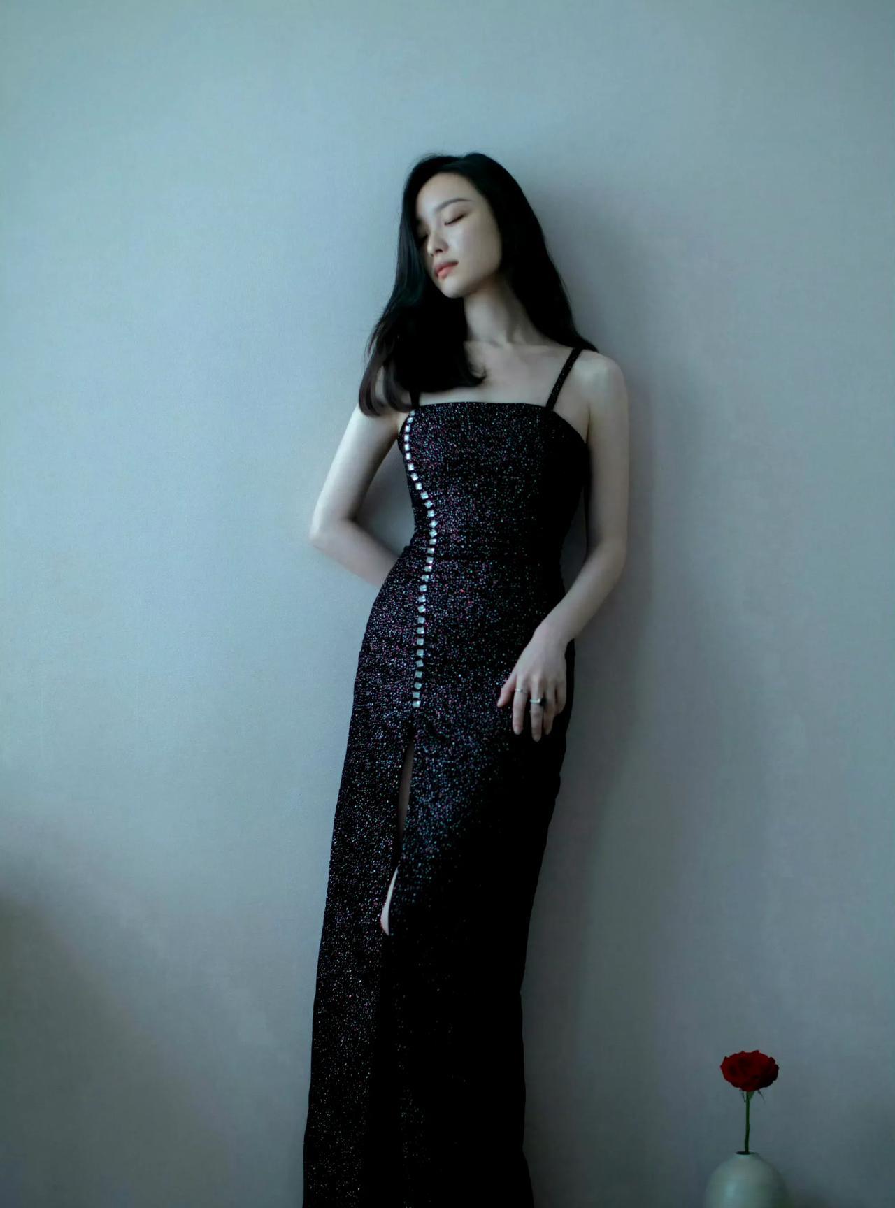 #倪妮 #一袭星芒缀染的吊带礼裙,裁撷暗夜流光缠绕身型。肩颈舒展成诗意弧面,开衩处漫溢从容底气,侧腰钻饰如银河落痕。她静坐或伫立,每寸褶皱都藏着静定锋芒——高级感从不是喧嚣堆砌,而是这份藏在光影里的松弛与矜贵。倪妮# #倪妮身材#