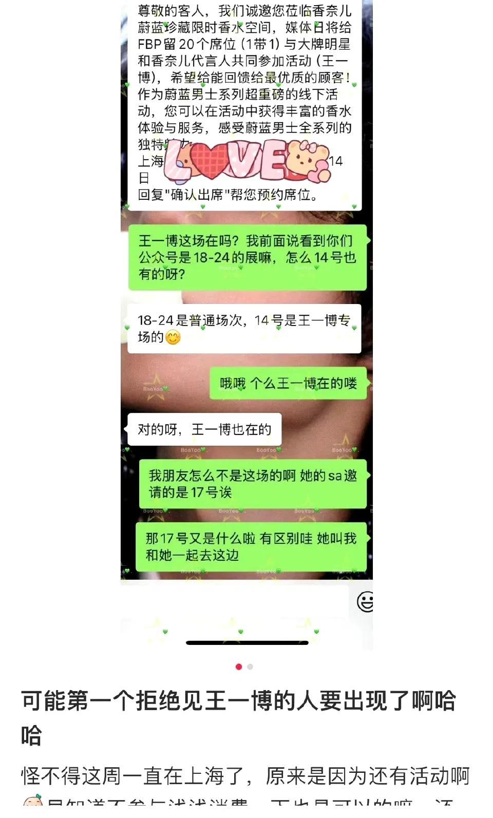 知道了王一博的新消息,又酸又羡慕[酸][狗头]。 难怪王一博一直在上海,练习赛车结束了,也没有新的行程。 原来是14号有香奈儿的线下活动。 也就是说一博要和20位富婆美女一起参加。 好羡慕这位美女能有机会参加王一博专场。但是,她好像不能参加。 看到了吗? 客服说,“至今未见过其他人拒绝”。 [酸][狗头] #今日所见所闻# #王一博#