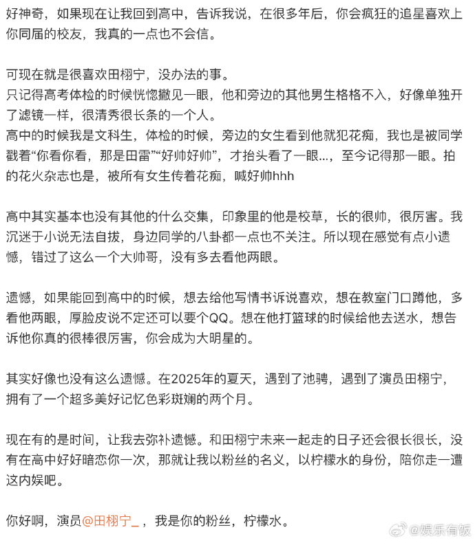 校友说田栩宁高中时是校草 高中校友成了田栩宁粉丝 从校草到偶像的梦幻联动!田栩宁高中同学曝其当年风采:一个眼神让女生记到现在,杂志照引发全校尖叫~ 现在以粉丝身份继续支持他[期待]!
