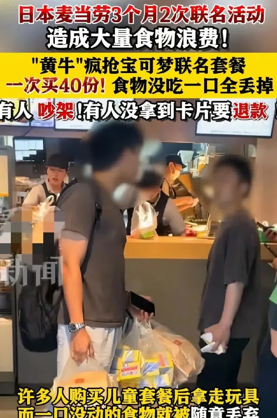 不管你信不信这就是赤裸裸的现实, 日本麦当劳再次给全世界麦当劳打了个样, 原来是3个月 2次联名活动, 黄牛疯抢宝可梦联名套餐, 一次疯狂买了40分, 食物没吃一口全部扔掉, 有人吵架,有人没有拿到卡片要退款, 还惊动了警察, 有人爆料这不是第一次了, 5月份的Chiikawa联名活动也引发抢购潮 也造成了大量浪费, 不是说日本人比较环保吗? 没吃的食物都可以随意丢弃, 不是说日本人都很爱惜粮食吗? 好家伙这回露馅了, 都扔在外面不好看吧, 不能给员工带回家或者发放给有需要的市民吗? 大家对于日本麦当劳门前被抛弃的食物怎么看?