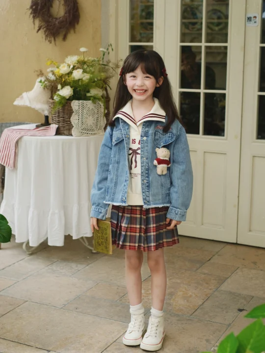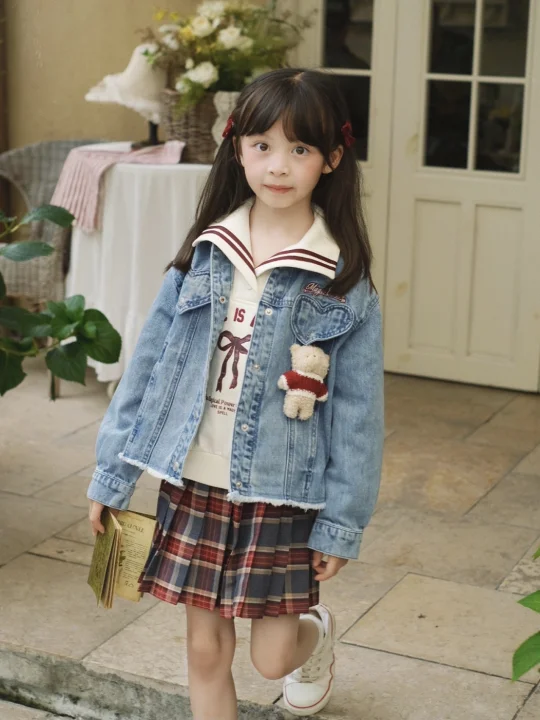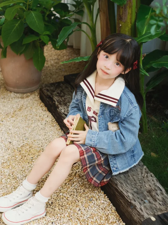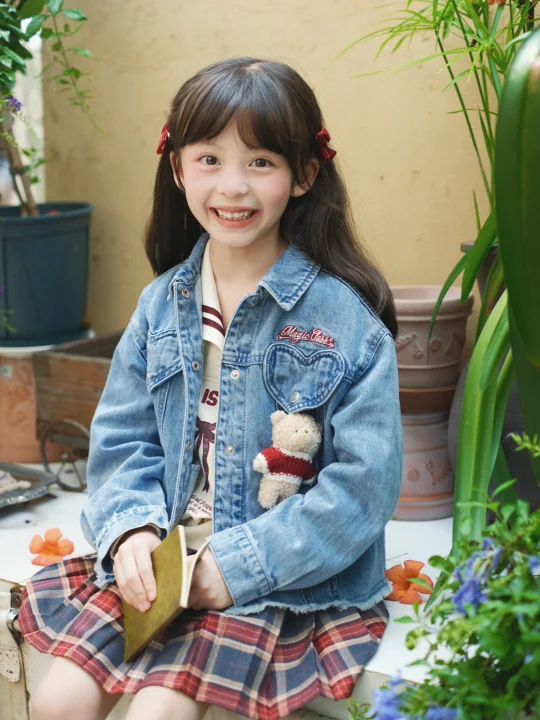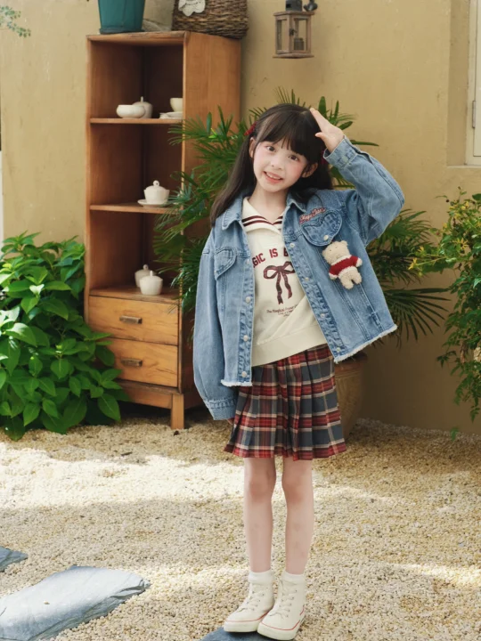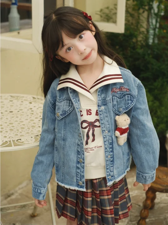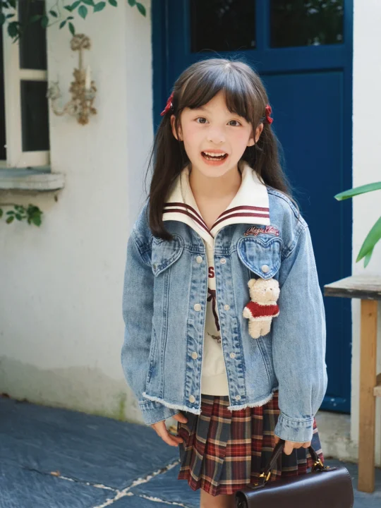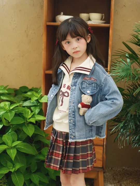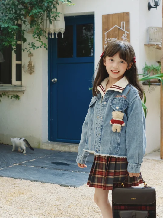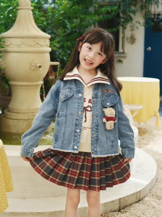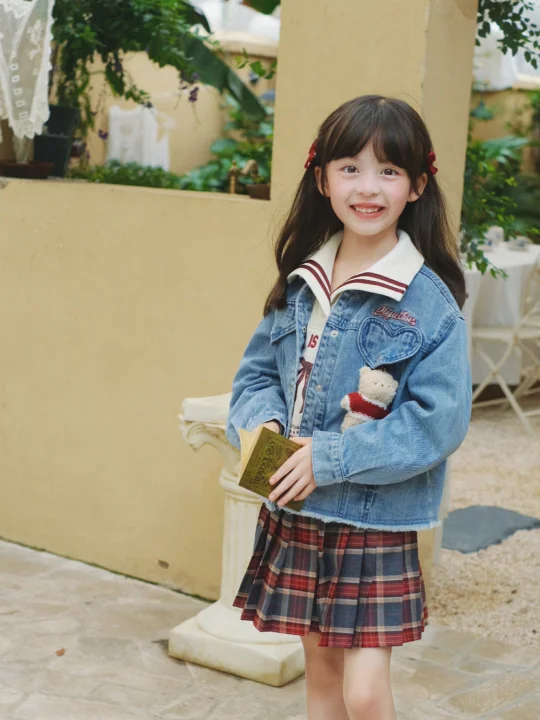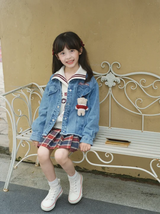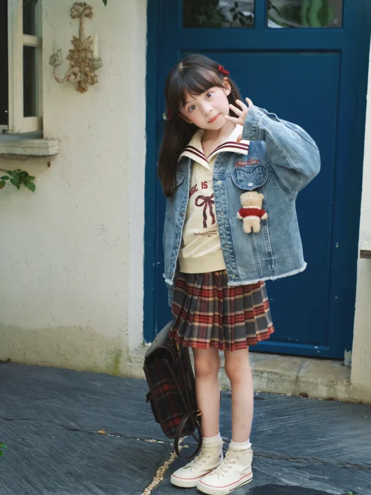 开学就是小学生啦~ 学院风穿搭先安排上 牛仔外套➕卫衣搭配同色系格子裙 真的是小学生既视感! 巴拉巴拉的这款全棉牛仔外套软软糯糯的,舒适度很高.毛边设计加上精美的刺绣,质感满满的~ 甜味十足的爱心口袋,太懂小女孩的心思啦 还有可爱的小熊玩偶挂件 星星说开学要穿这套去学校🏫 学院风穿搭骗你生女儿人类幼崽可以多可爱巴拉巴拉巴拉巴拉儿童牛仔巴拉巴拉软软牛仔系列巴拉巴拉魔法返校季