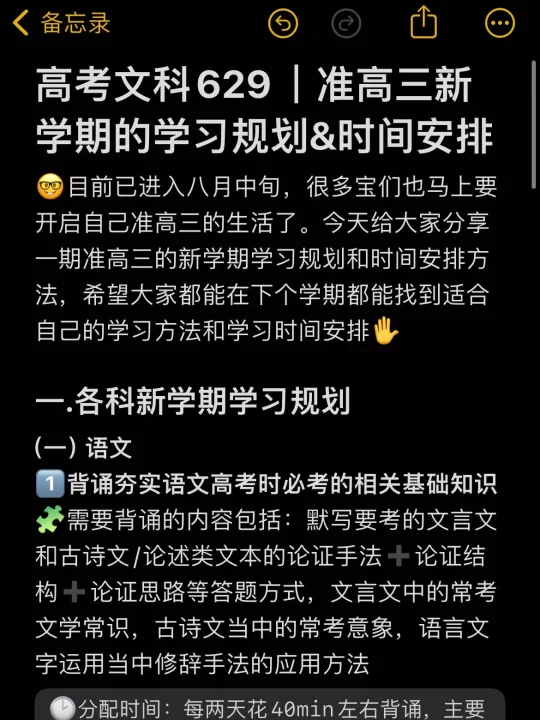 今天给大家分享一期准高三的新学期学习规划和时间安排