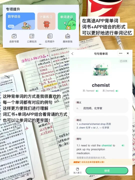 如果觉得词书背诵太过枯燥,那么可以在上学期间采用单词书的背诵方式,在周末或者晚自习回家后利用高途App的背单词功能进行单词的背诵。看到汪顺也在背单词,我就体验了一下高途的句句背单词功能,结果真的惊艳到我了!它每一个单词都有着对应的例句,背诵起来也相对来说比较轻松,可以成为大家很好的学习搭子🥹