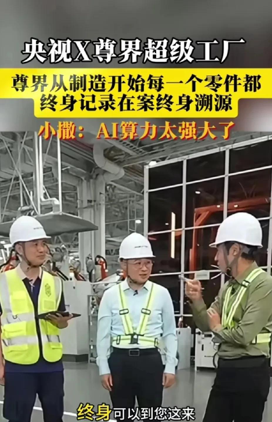 见惯了大场面的撒贝宁,被X尊界超级工厂深深震撼了。尊界车上每一个零件终身记录在案,终身可溯源。这就是华为对品质要求的严苛。 看到这忽然没来由的想起《功夫》里冯小刚饰演的帮主的那一句:还有谁? 近三万个质量检测点位,可以做到只要车没有报废,整车档案就伴随终身!随时可以调回某一个零件当年生产时的某一个环节的状态。 佩服之至! 还得是华为啊! 除了说好强之外,撒贝宁这个文科男可能不太能完全理解这一点到底有多强……