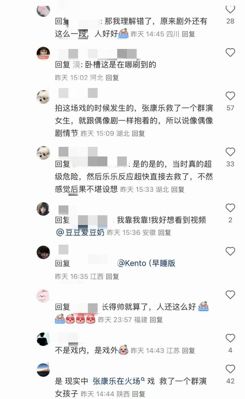 张康乐锦月如歌火场救人 真的永远会被真诚的人打动!剧中是柔柔弱弱的楚昭大人,戏外是保护别人的张康乐,之前就看到了很多爆料说在拍摄现场救了群演,平时还会喂小流浪猫,很难不被真诚的人打动!!
