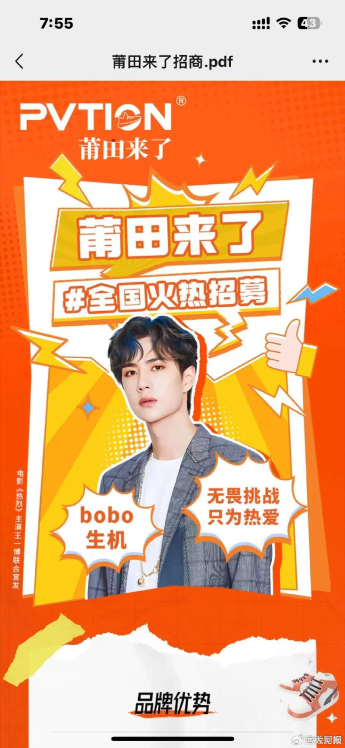 王一博起诉莆田鞋 据企查查信息,王一博与多家莆田鞋商家的肖像权纠纷案件,将于 9 月在福建莆田荔城区法院开庭。去年 7 月曾有媒体报道,涉事品牌自称与王一博有合作,其团队当时明确回应 “无合作,属侵权”。