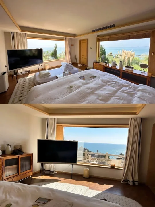 👉 重点夸夸海景房:视野绝到躺床上就能拥入无敌海景,堪称视觉盛宴!连浴缸都是面朝大海的设计,一边泡澡一边看海天一色,爽到不想出来~