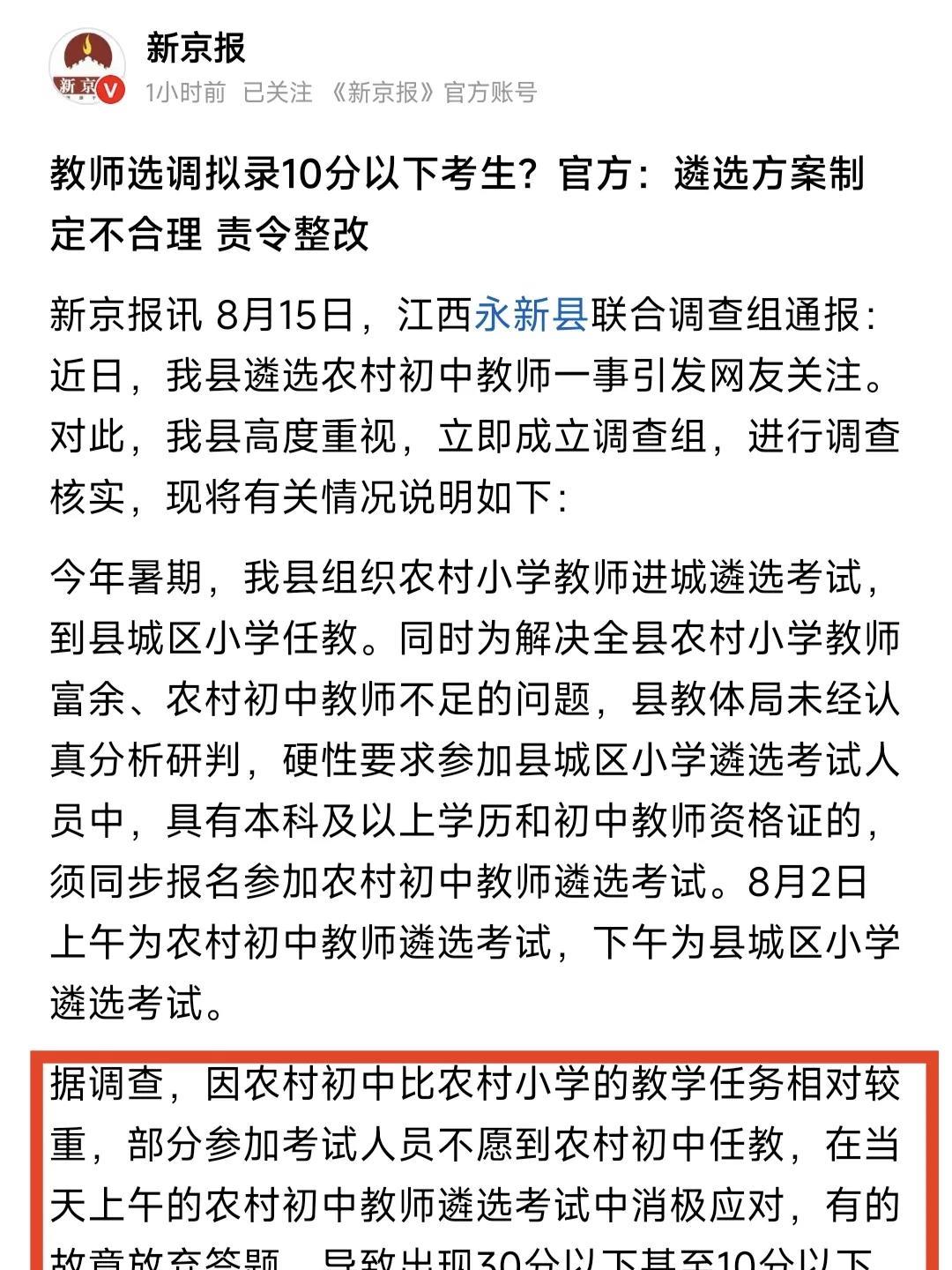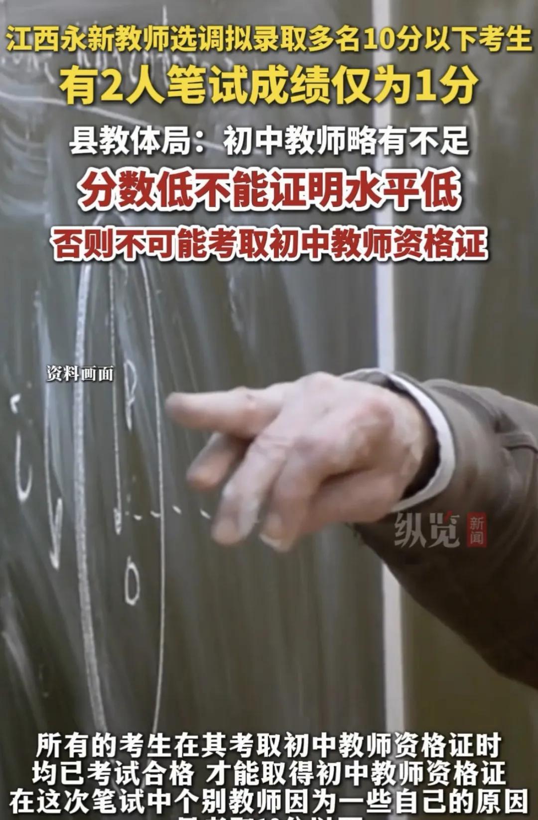 #头号创作者激励计划#江西永新县拟录用笔试10分以下的小学老师担任初中老师,引