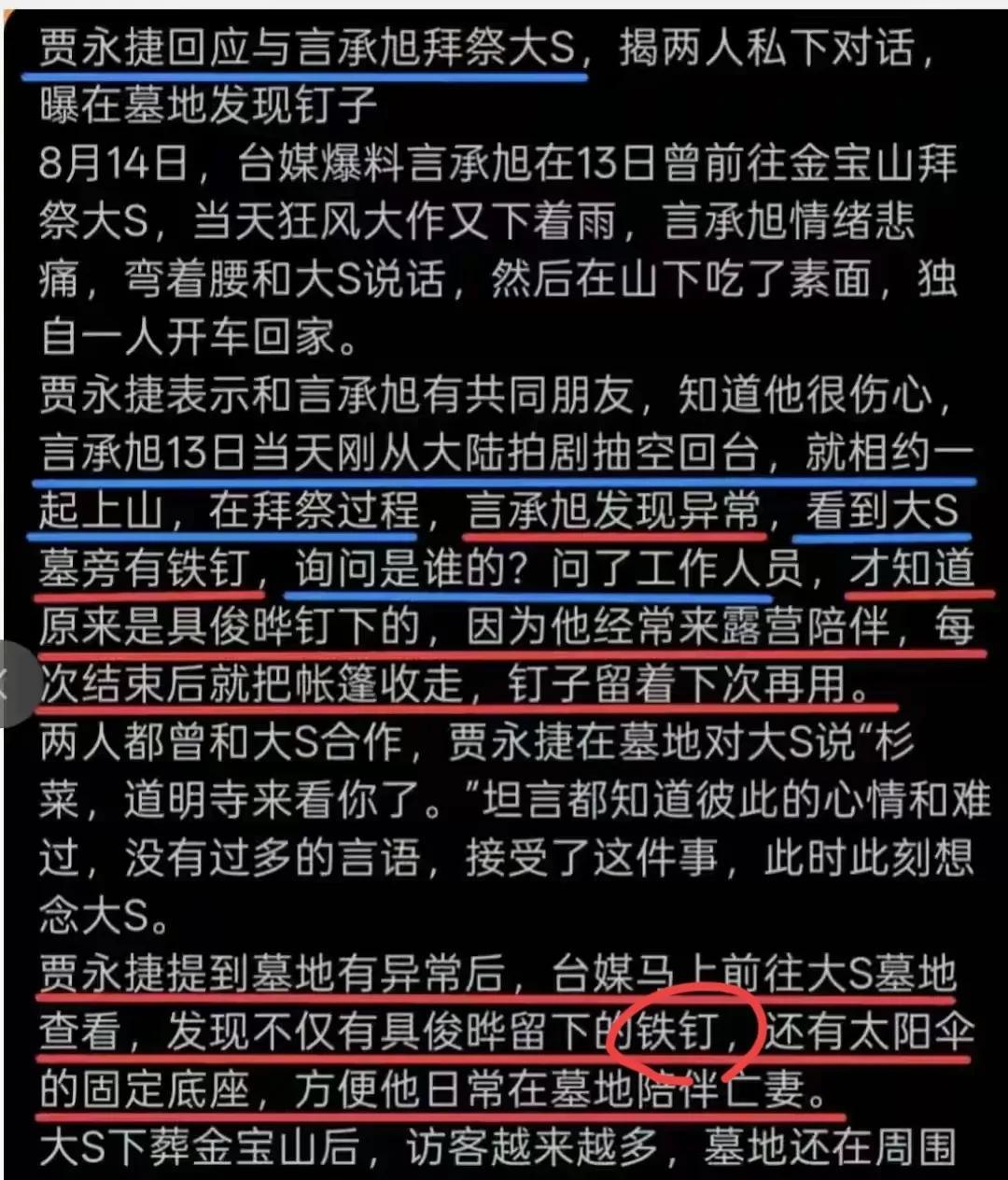 越看越像s家安排的剧本,再去的人,还能从墓前发现“爱的痕迹”,几个钉子又成了爱的表现?! 最恶心的男人就是具光头,吃软饭天花板,死在他手里还在吃软饭。现在墓前几个钉子,还被大家各种赞誉。真是笑死 活着不孝,死了乱叫!活着的时候她努力托举具光头,画展,包包店,演唱会,花了那么多钱,结果烂泥扶不上墙,丢尽了她的脸。死了就让她安静地离开吧,别消费她了 具老头这是找到露营好地点了,带上吃的喝的,又好玩又省钱,又来一波炒作 还挺讲究的,打上钉子,方便撑伞和搭帐篷,做个样打卡拍照了再回去,还要让记者看到他的深情,否则遗产拿的有点难看 活着没怎么见,死了天天表演。 迟来的深情比什么还贱 几个钉子就把他们感动成这样?他们湾湾的认知,真挺令人刮目相看的。