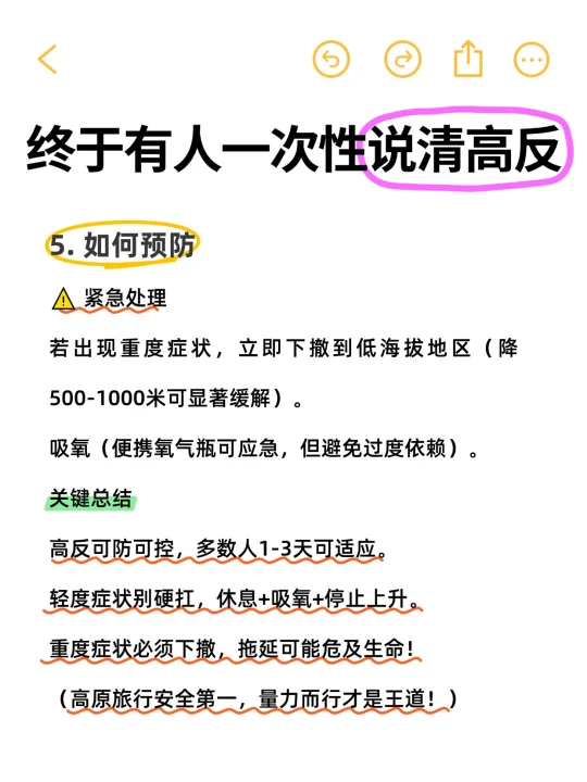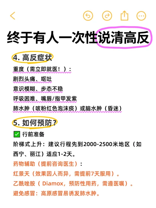 高原反应(简称“高反”)是人体急速进入海拔2500米以上地区时,因低压、低氧环境产生的生理应激反应。常见于高原旅行、登山等场景,通常需2-3天适应。