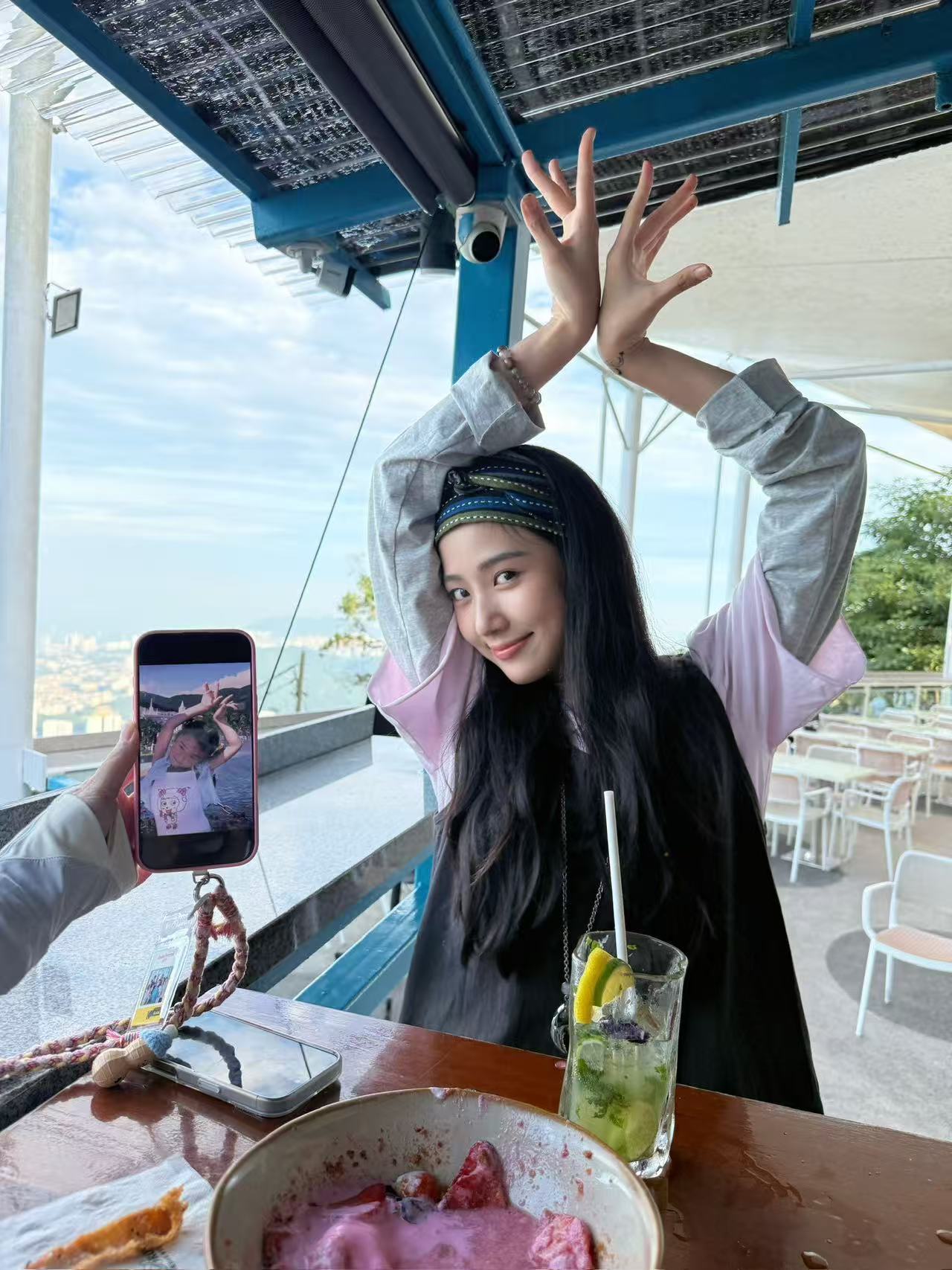 救命!红配绿好优雅!知性气质拉满,南洋味超浓~和粉丝童年照跨时空同框,互动太会了!槟城景好搭配噜噜晓更治愈了,美景+美人对我眼睛很友好,蹲后续更多旅程花絮!卢昱晓红配绿美成这样卢昱晓用粉丝童年照打卡