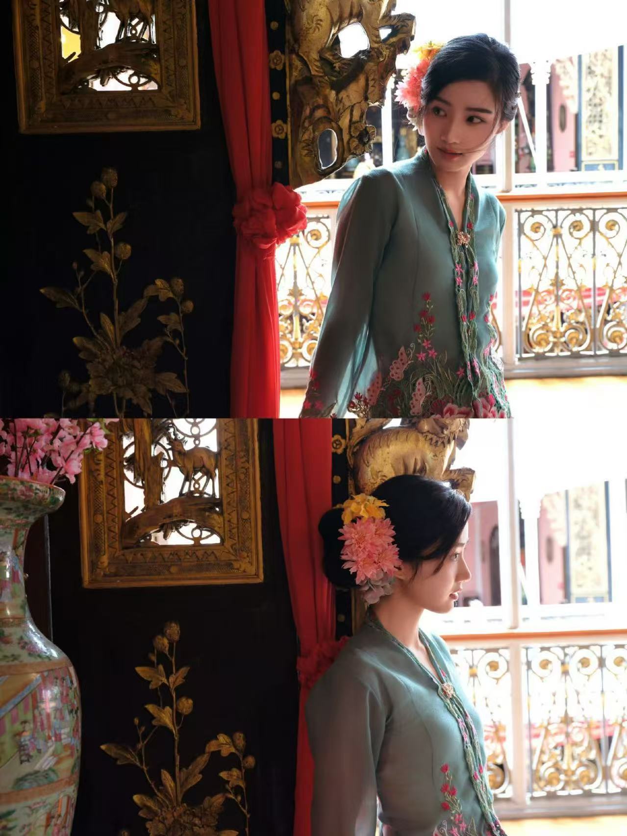 救命!红配绿好优雅!知性气质拉满,南洋味超浓~和粉丝童年照跨时空同框,互动太会了