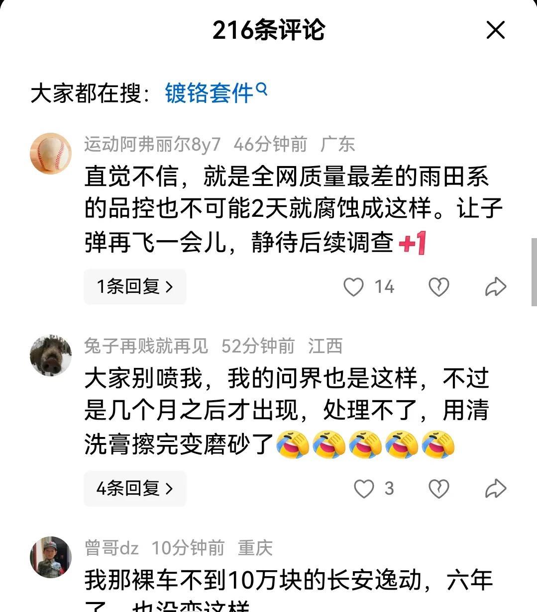我五六万的面包车十年了镀铬件都是亮的!提车两天就腐蚀了鬼信!