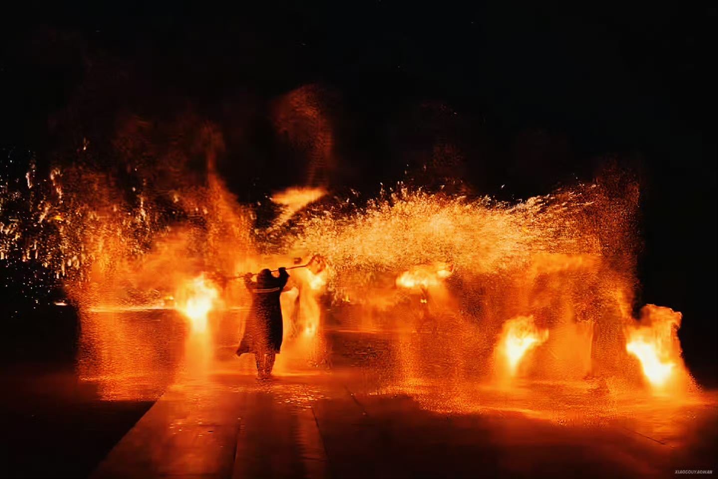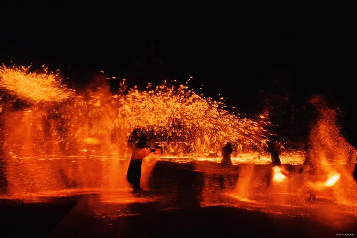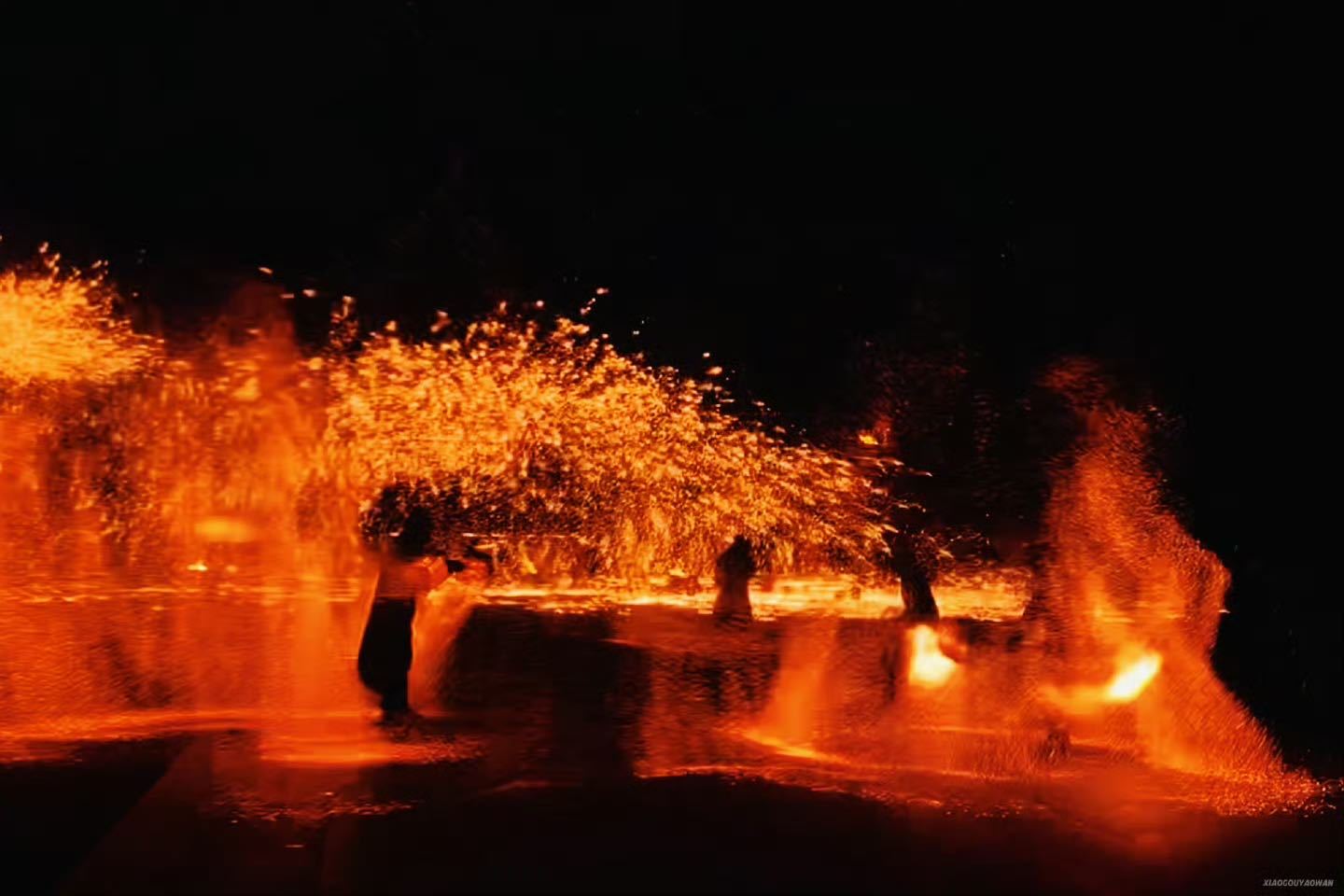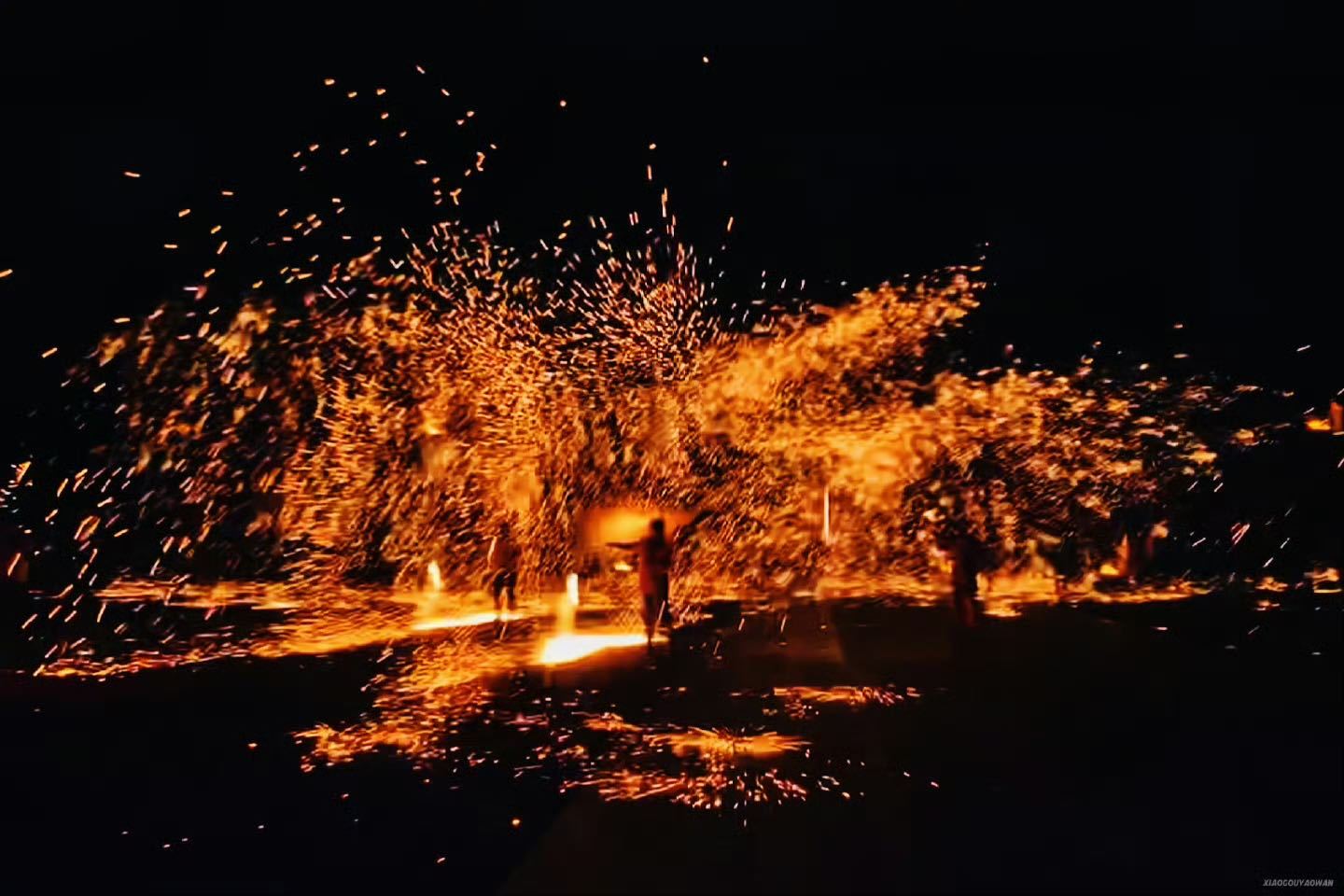 王鹤棣粉丝打铁花应援 粉丝是有点浪漫在身上的!横店部分的杀青应援整了打铁花这出,千度铁水泼成金瀑,比任何灯牌都耀眼——原来“为你而来”真的能具象成这样热烈的样子。