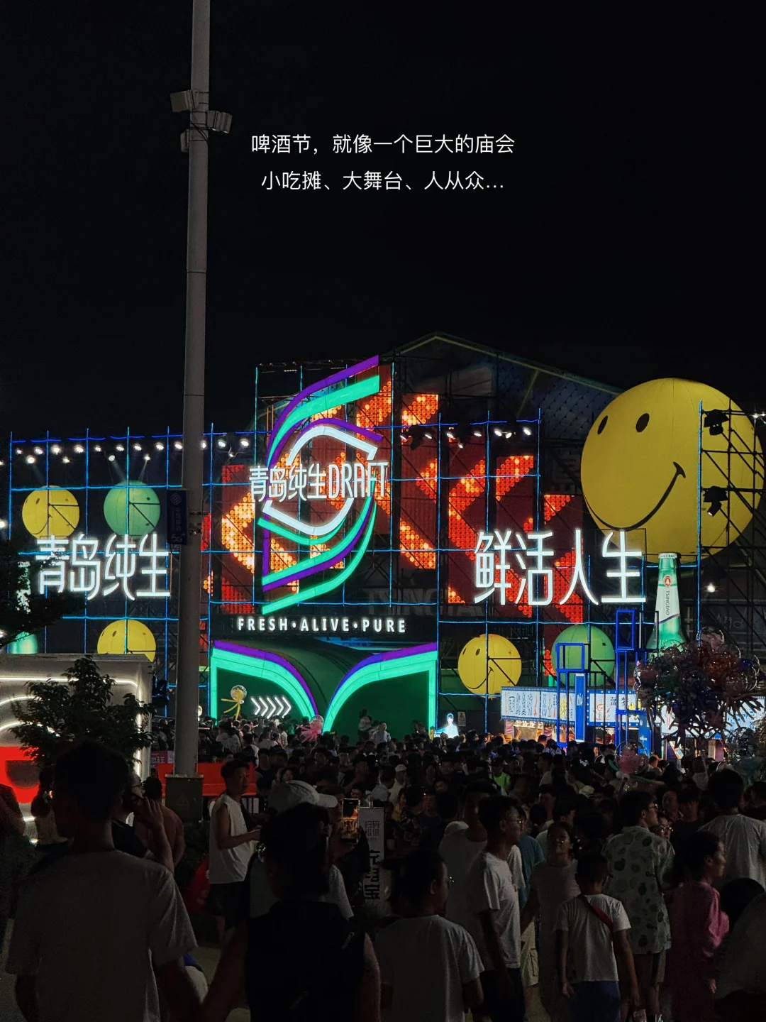 青岛旅行第三天 迎来了本次旅行的重头戏:啤酒节!🍺 因为这次旅行是妹妹策划的: 《送给酒蒙子老妈的生日礼物》 许了愿望,吃了蛋糕,接着就出发去喝酒! 开幕仪式人流量巨大 空气中是各种小吃的复杂味道 耳边是震天响的大舞台音响 努力寻觅着能让我眼前一亮的东西 但人头攒动,除了脑袋还是脑袋 蒜鸟蒜鸟 还是回酒店喝酒罢!🍻